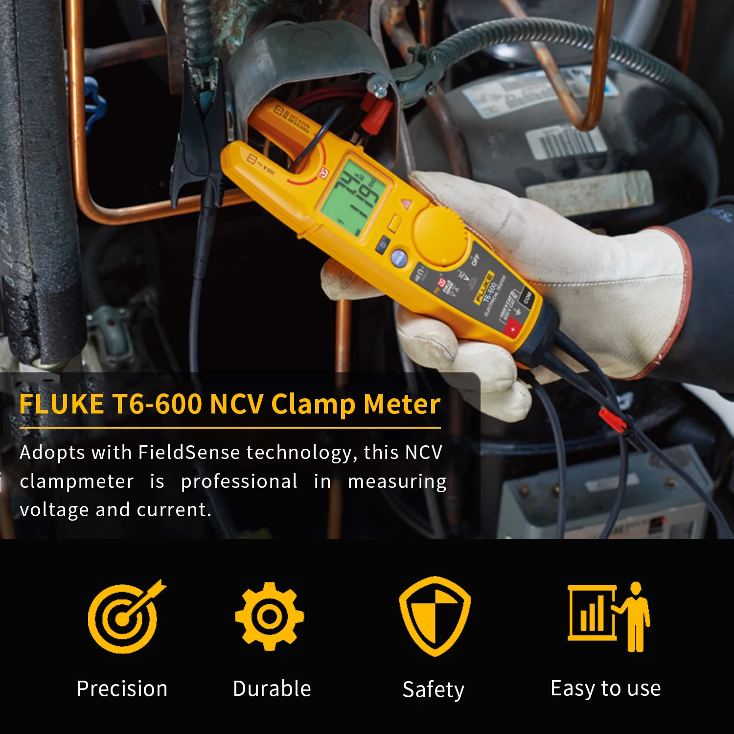 Принимает с технологией FieldSense, этот токоизмерительный прибор NCV является профессиональным в измерении напряжения и тока. Он долговечен, безопасен и удобен в использовании, что делает работу по поиску и поиску неисправностей проще и эффективнее.