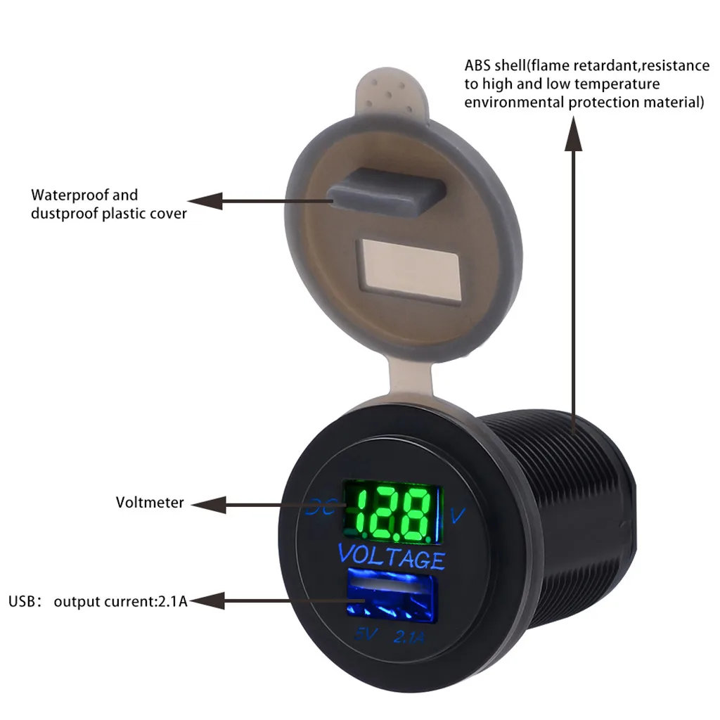 Применение: Широко используется с электрическим оборудованием для питания: транспортного средства, GPS, мобильного телефона, камеры, mp3. USB со светодиодными синими светодиодами.