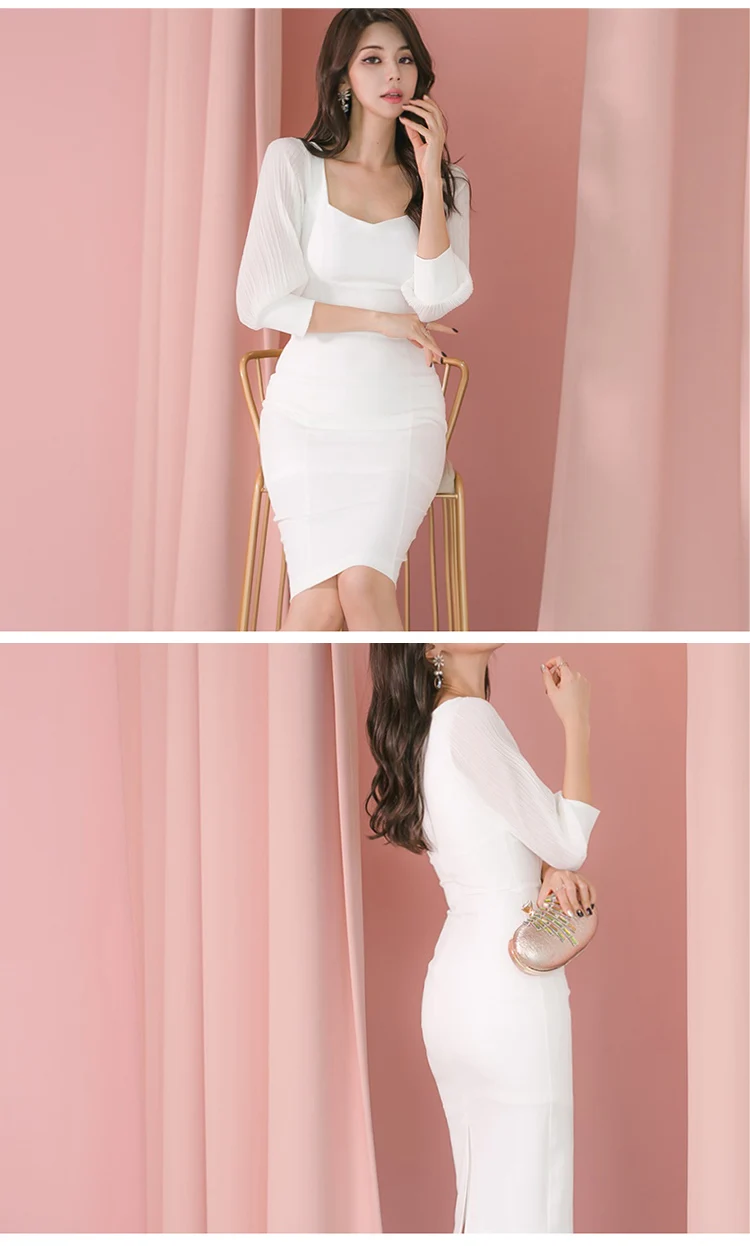 Женское офисное платье карандаш H Han Queen Осенние костюмы с отложным воротником