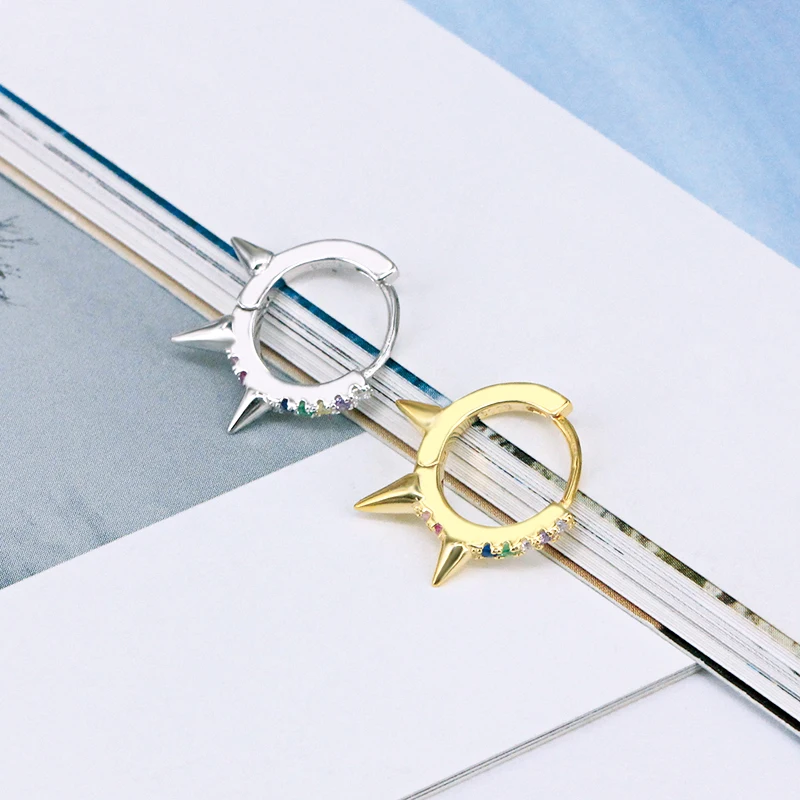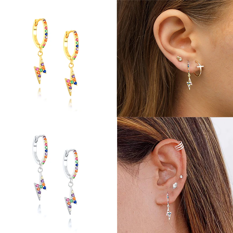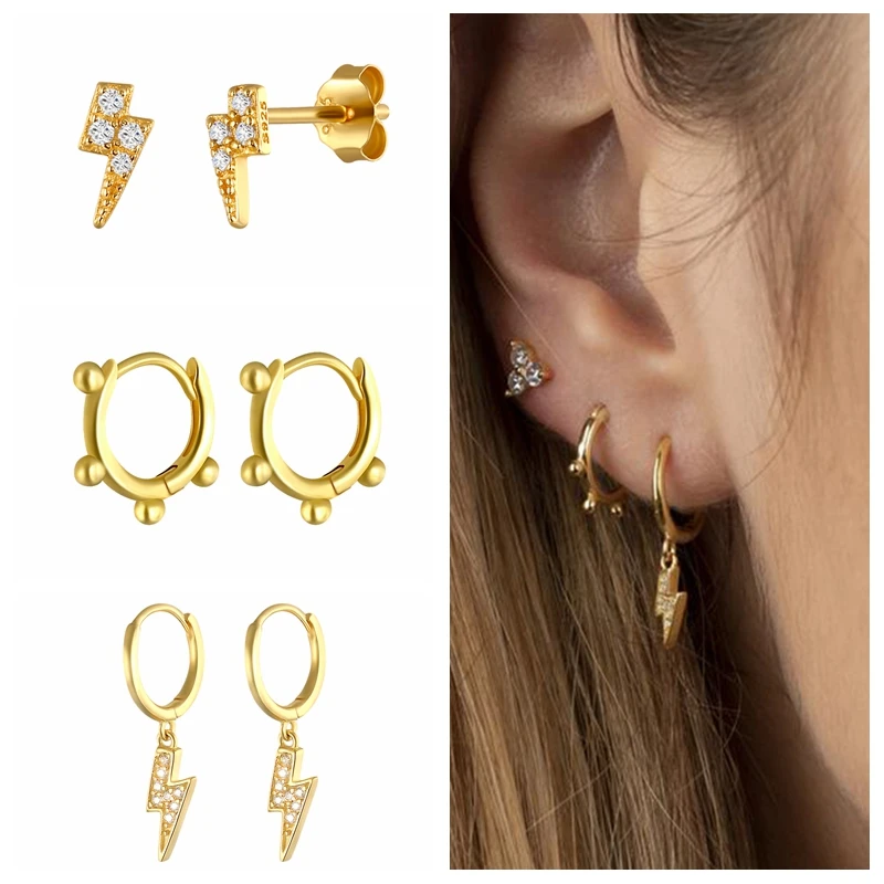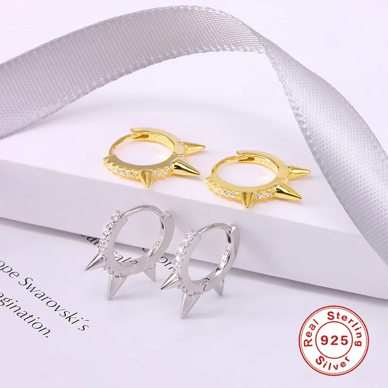 Женские серьги из стерлингового серебра 925 пробы, золотые треугольные серьги с молнией для девушек, серьги для пирсинга костей, круглые серьги в стиле панк, Z5