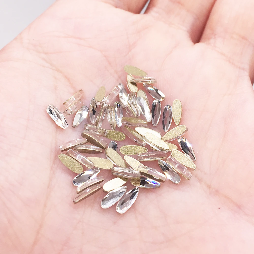 Название товара: Необычные Стразы для дизайна ногтей Цвет: кристалл Размер: 2x6 мм Задняя сторона: золото Количество: 30 шт./упак. Использование: сумки, одежда, Нейл-арт, обувь, мобильный телефон, коробка, ручка, мебель, поздравительные открытки и т. д.