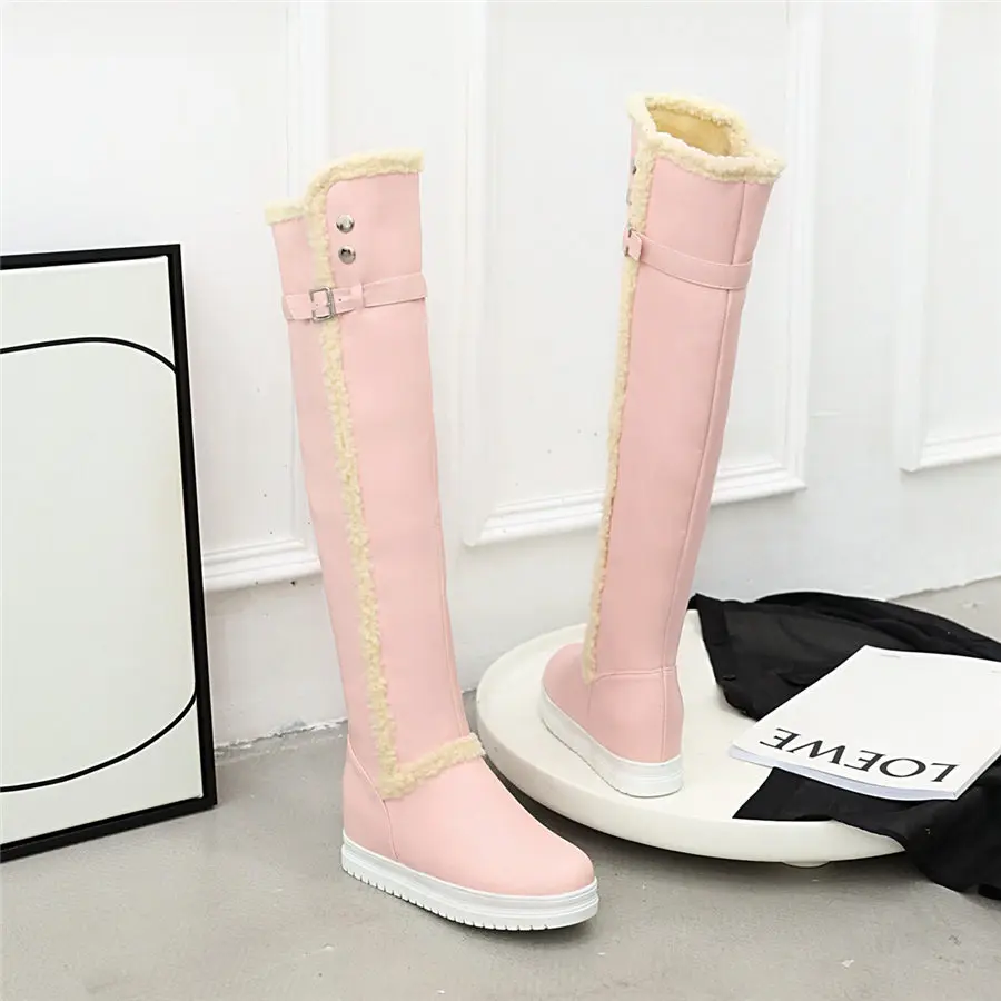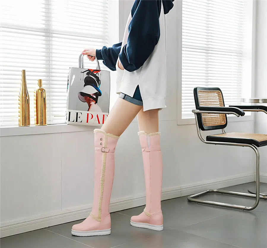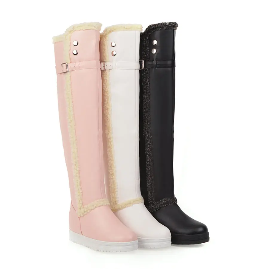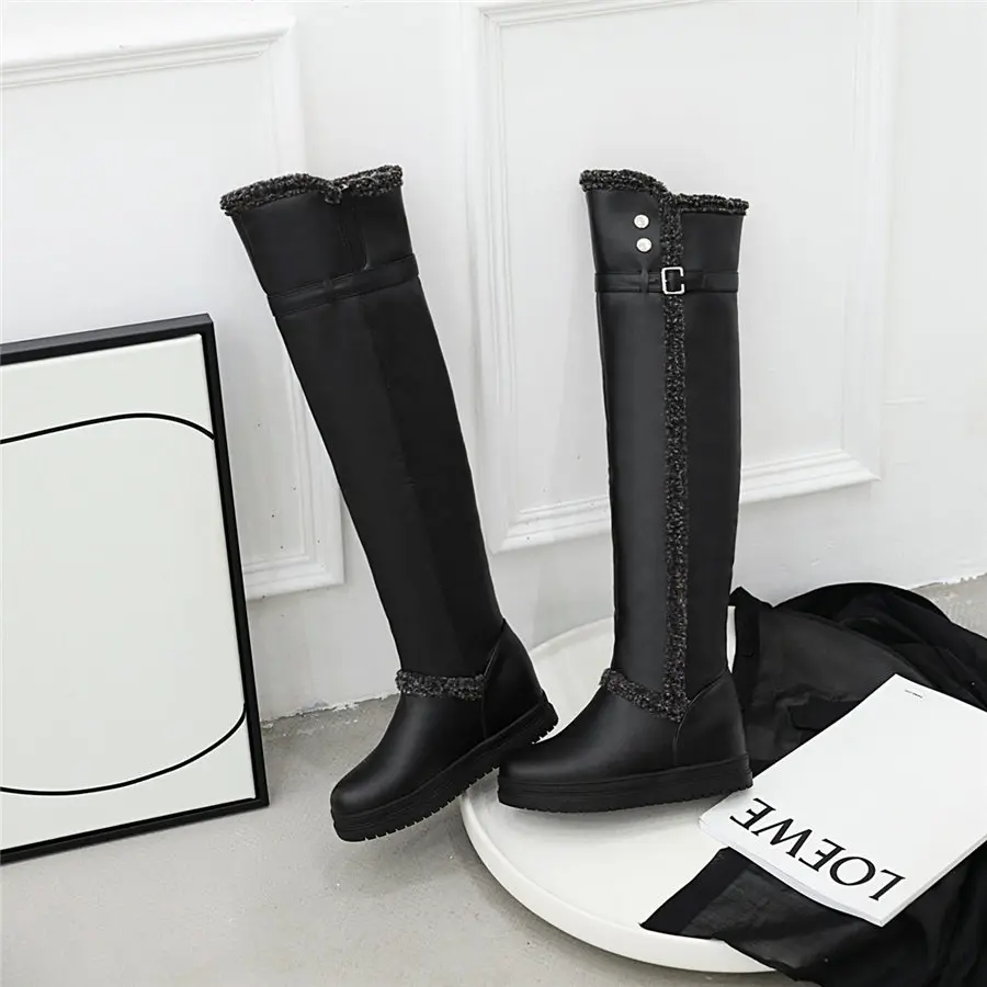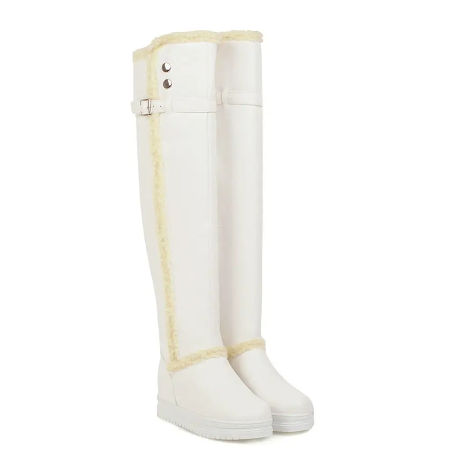 Woman Thick Plush Thigh-high Snow Boots Winter Warm Fur Buckle Platform Over Knee Boots
