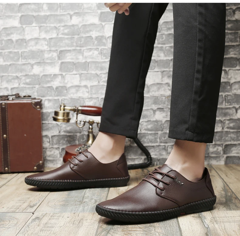 Модный новый красивый мужской повседневный обувь Кожа Лето Дышащие отверстия Роскошные брендовые туфли на плоской мягкой подошве Нескользящая трендовая обувь для вождения