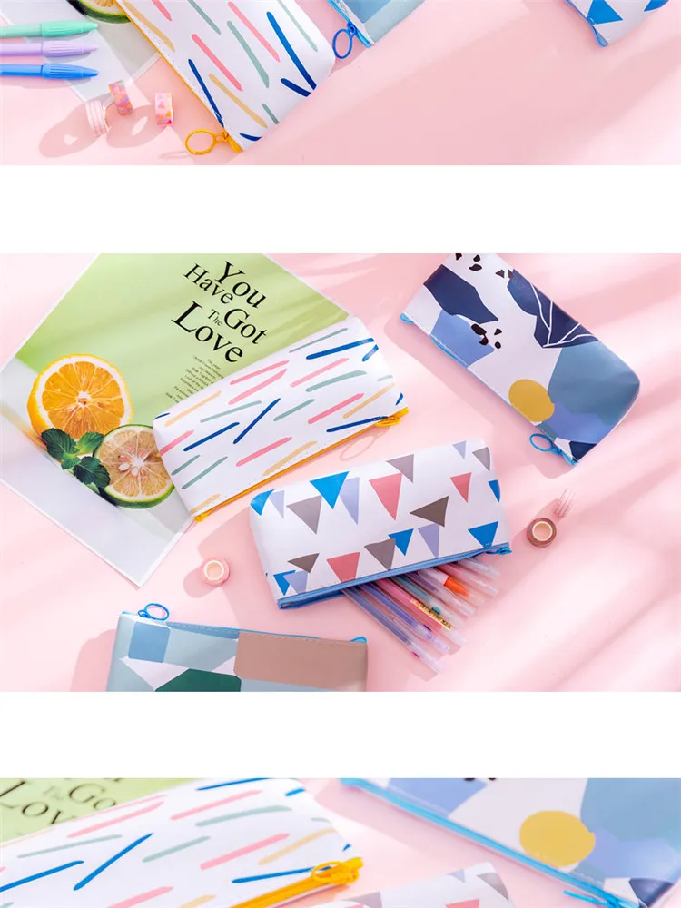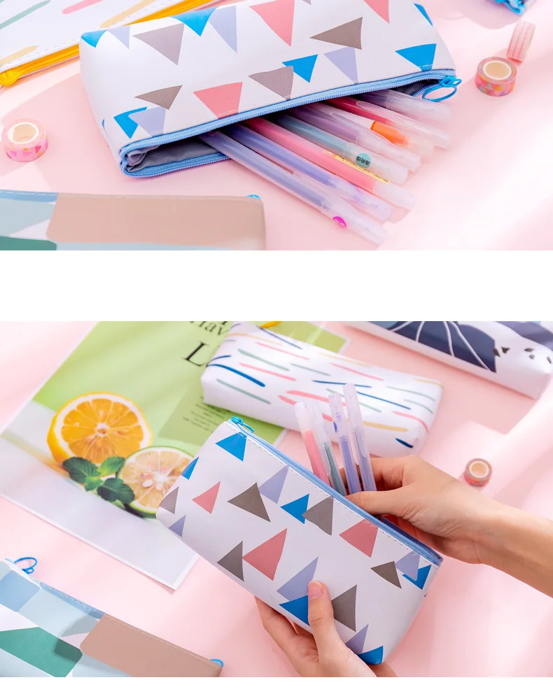 . Название: креативный простой цветной мешок для ручек Размеры: 18,1*8,7 см Вес: 36,36 г Материал: искусственная кожа Упаковка: мешок из полиуретана с открытыми порами Стиль: Доступно 4 стиля