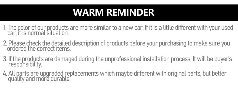 У нас уже есть проверка качества для каждой части перед отправкой, поэтому, пожалуйста, откройте упаковку, чтобы проверить детали и аксессуары с пакетами не повреждены во время доставки, прежде чем вы войдете в посылку.