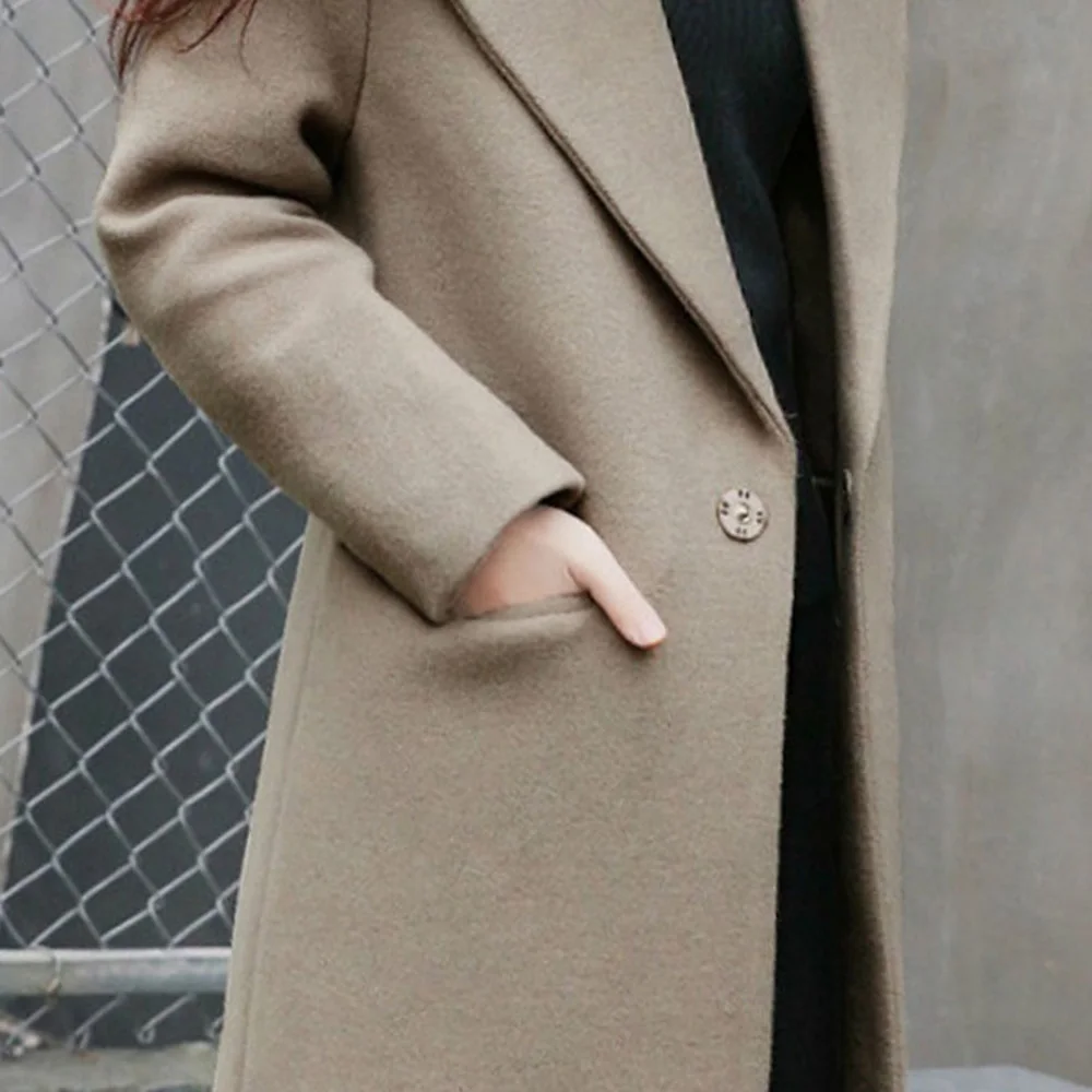 Осенне-зимнее женское Шерстяное Пальто, новая модная Длинная шерстяная куртка, однобортное тонкое женское Шерстяное повседневное пальто с длинными рукавами