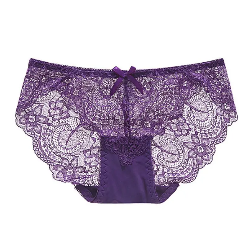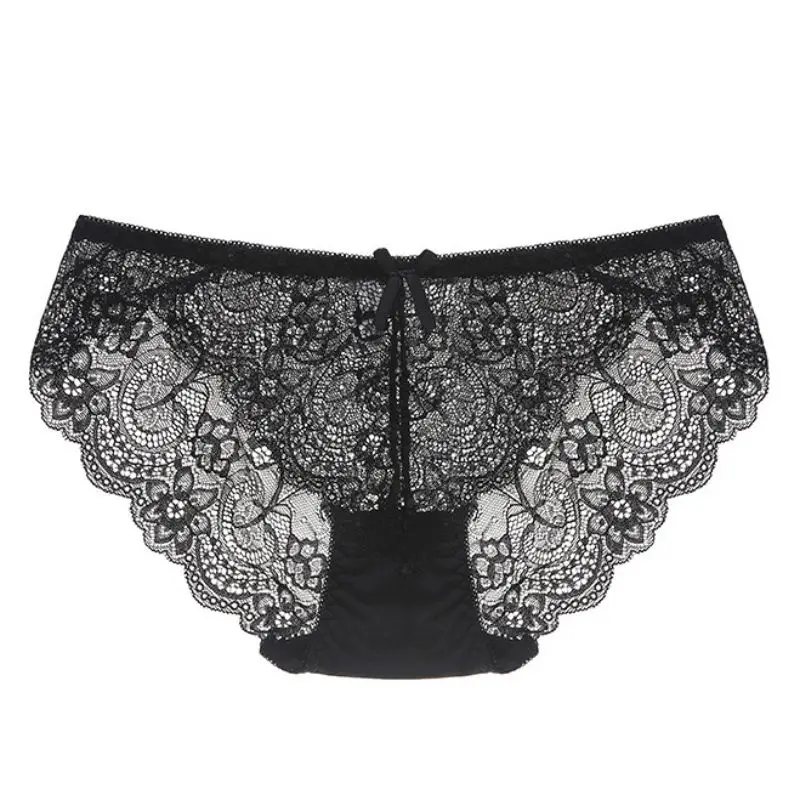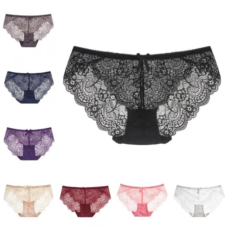 Женское нижнее белье, сексуальное нижнее белье, кружевные трусики, дышащие Бесшовные трусы, одноцветные, с бантом, полые трусики