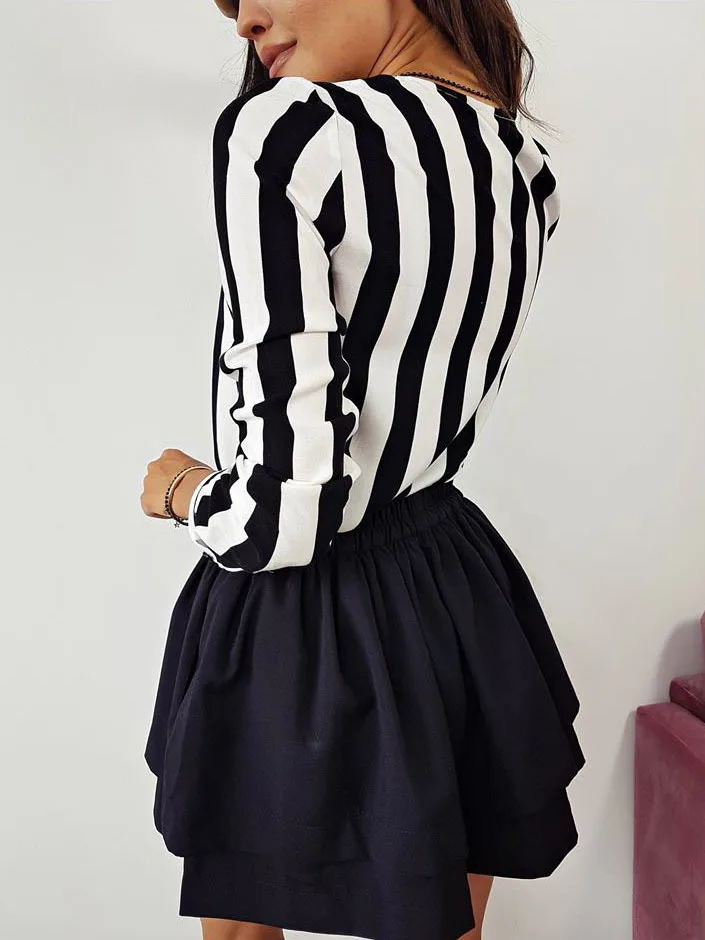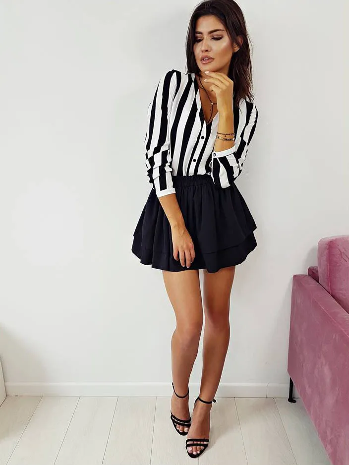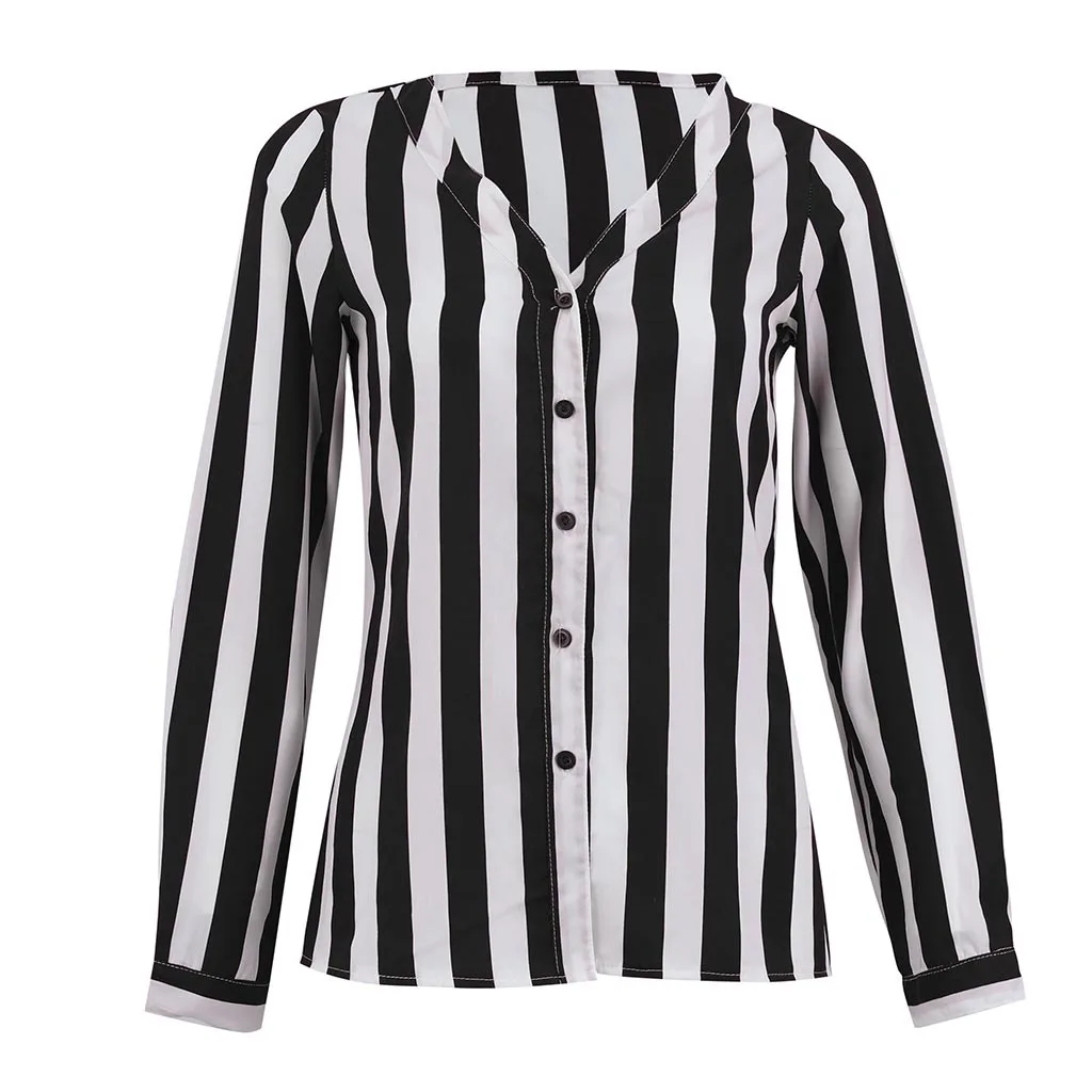 Стиль: Женская Повседневная Блузка в полоску с v-образным вырезом и длинными рукавами