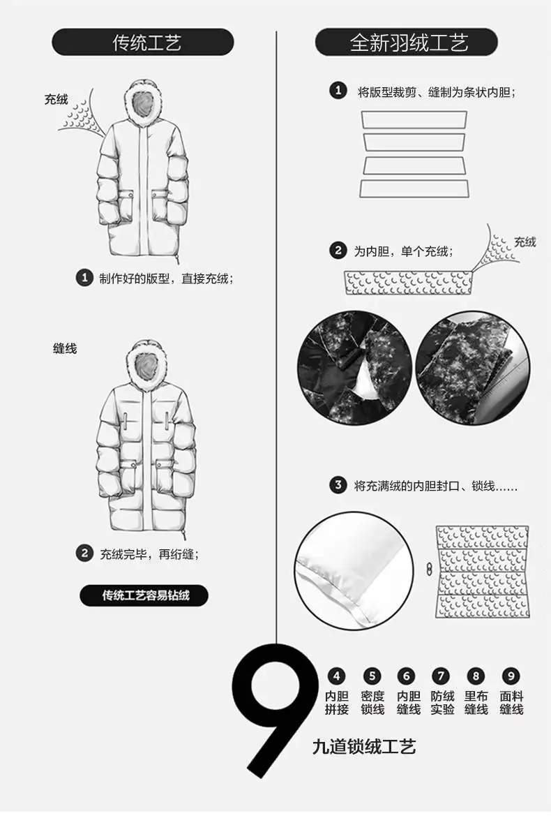 BOSIDENG haute couture глубокий зимний 90% гусиный пуховик выше колена с капюшоном X long парка