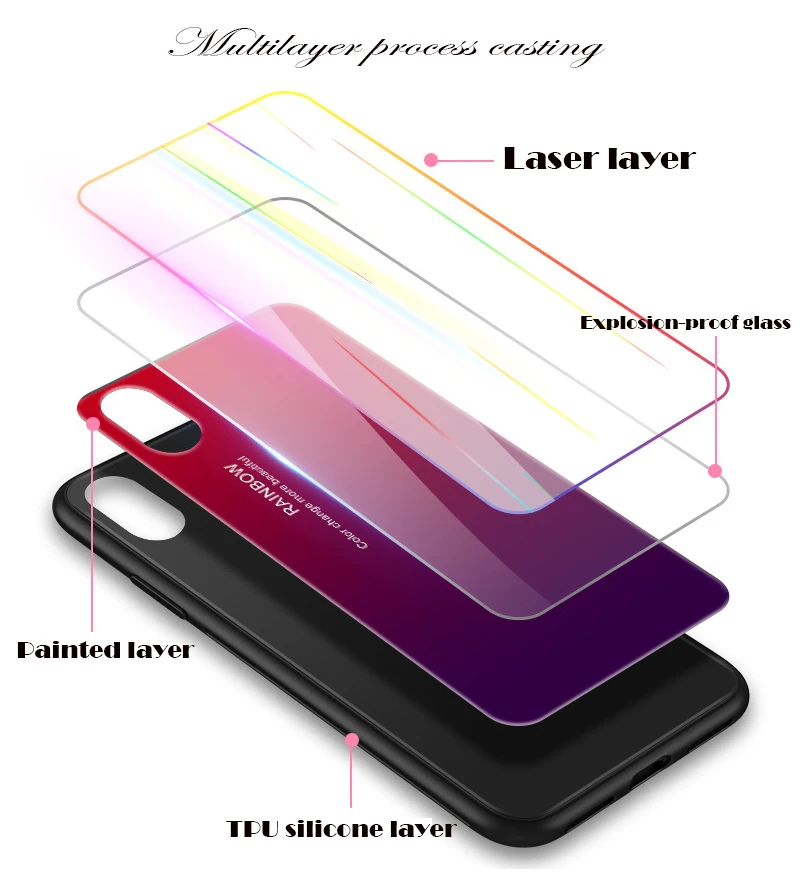 [Наименование товара]: гальванический лазерный градиентный телефонный чехол [Материал изделия]: закаленное стекло
