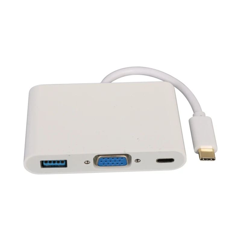 Особенности: многопортовый адаптер 1,3 в 1 USB-C-VGA --- многопортовый адаптер type-C-VGA для подключения ПК с разъемом type-C или ноутбука apple book l к мониторам и дисплеям с разъемом VGA (подключение сотового телефона к монитору не поддерживается). 2. VGA порт Sup порт s 4 K разрешение --- USB C адаптер передает full HD аудио и видео с компьютера или планшета на VGA дисплей для потоковой передачи и игр с разрешением до 4 K (3840X2160 P, 30 Гц). Примечание: VGA не передает аудио 3. Порт USB 3,0 поддерживает высокую скорость передачи данных --- конвертер типа C в VGA может передавать скорость до 5 Гбит/с, позволяет подключать имеющиеся usb-устройства, например, клавиатура, мышь, HDD, флеш-накопитель для синхронизации телефона или других устройств. 4. type-C порт Sup порт s Зарядка --- порт type-C подключает и заряжает Совместимые устройства и периферийные устройства, также позволяет пройти через зарядку для питания ПК или для ноутбука apple Book, обеспечивает мощность до 60 Вт (20 в/3 а). 5. Совместимые модели-подходит для 2015/2016/2017 Apple Book, для Apple Book Pro, для нового Chromebook Pixel microsoft Lumia 950, для других устройств type-c со встроенным режимом DP Alt. Характеристики: Цвет: белый тема: дома Тип: Адаптер Материал: АБС Упаковка: сумка Примечание: Из-за разницы в экране цвет может немного отличаться от того, что вы ожидаете, пожалуйста, имейте в виду, что в комплект входит: 1 usb-кабель с блоком питания