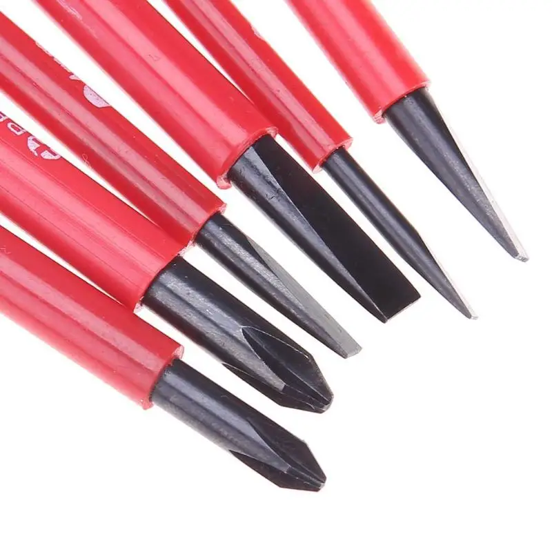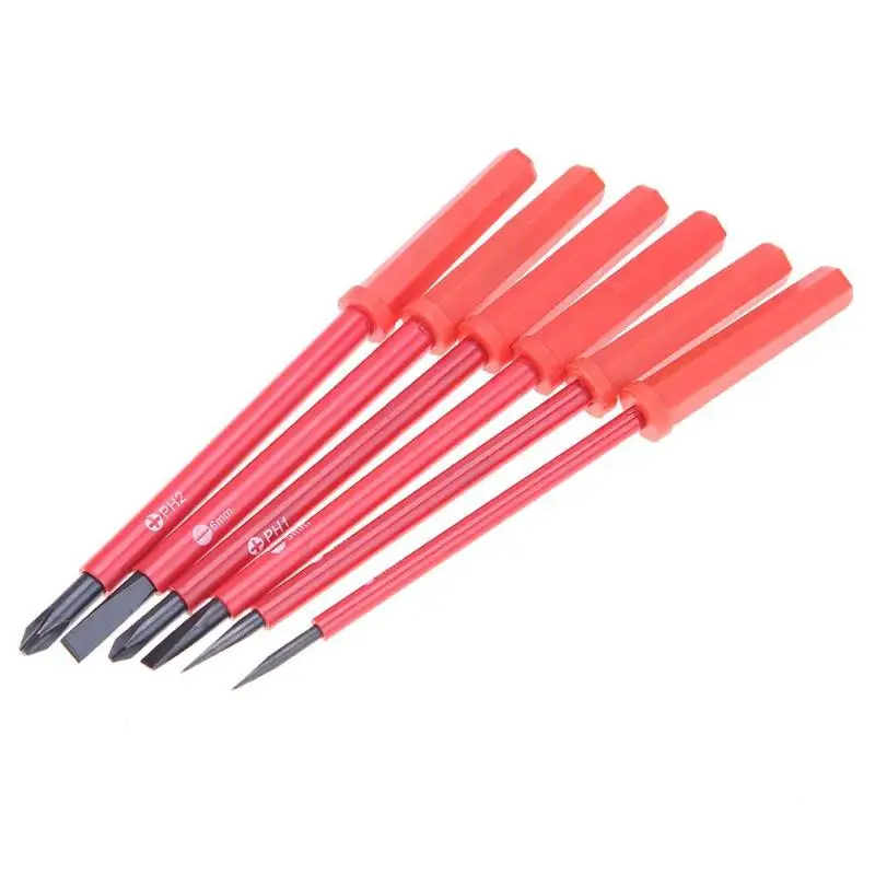 7 шт. многофункциональная отвертка Набор бит универсальный изолированный отвертка Ремонт набор ручных инструментов Характеристики: Тип посылка: многофункциональный комплект Материал: хром-ванадиевая легированная сталь Твердость: HRC52-54 Отвертка Длина: 155 мм/6,1 В Тип вращающейся головки: крестообразная, с прорезями Характеристики отвертки: Толщина лезвия: SL3/4/5/6 мм Перекрестие: PH1, PH2 Стандарт: метрический Вес: 252 г Область применения: бытовая техника, электрическое, инженерное строительство украшения Функция: многофункциональная