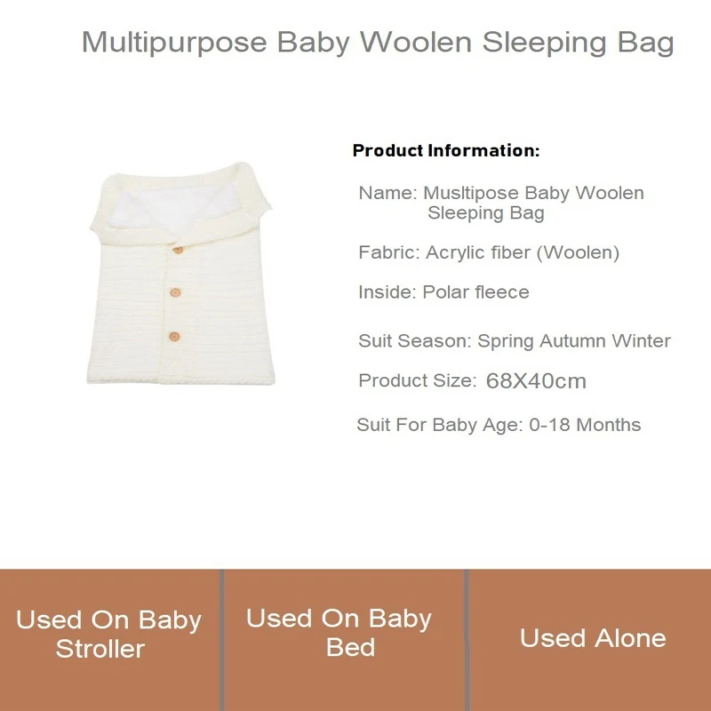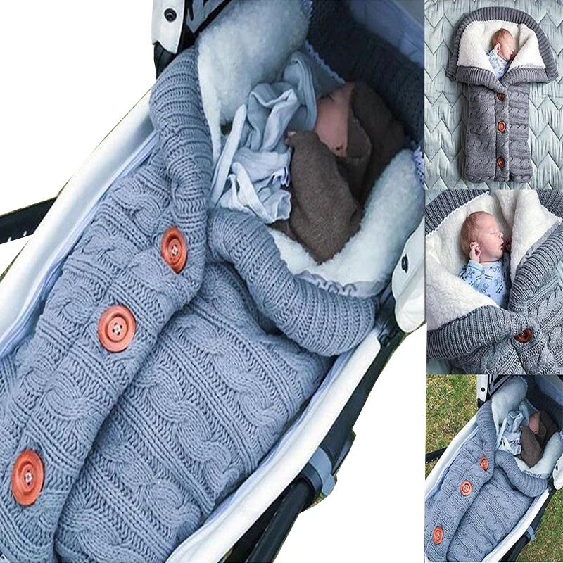 Детский спальный мешок, конверт, зимний детский спальный мешок, стелька для коляски, вязаный спальный мешок для новорожденных, Вязаная Шерсть, Slaapzak