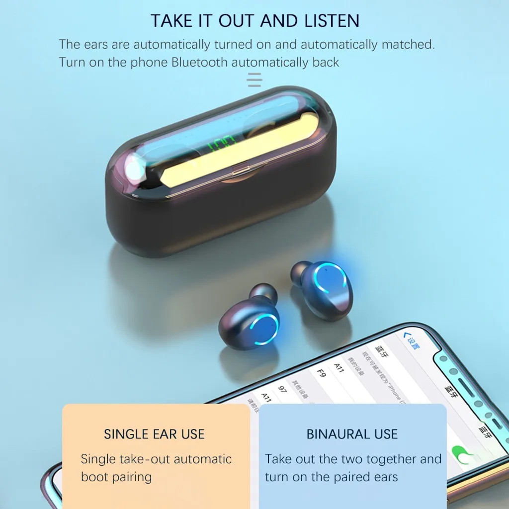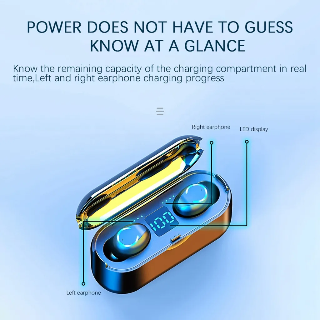 - 8. Светодиодный цифровой дисплей питания, большая емкость зарядной комнаты/мобильного телефона аварийной зарядки, 5,0 смарт-кнопка может использоваться в качестве держателя мобильного телефона, 8D звук кино, настоящая Беспроводная bluetooth-гарнитура