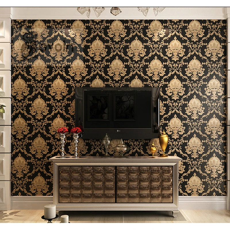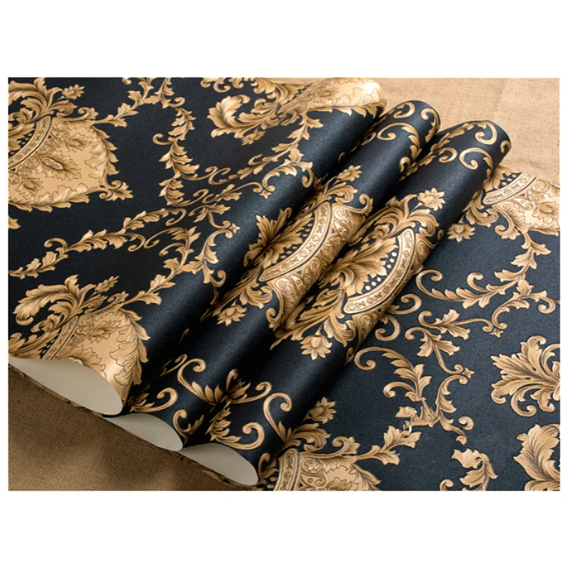 Роскошная черная металлическая Золотая Текстура Виниловая Дамасская Наклейка на стену для домашнего декора