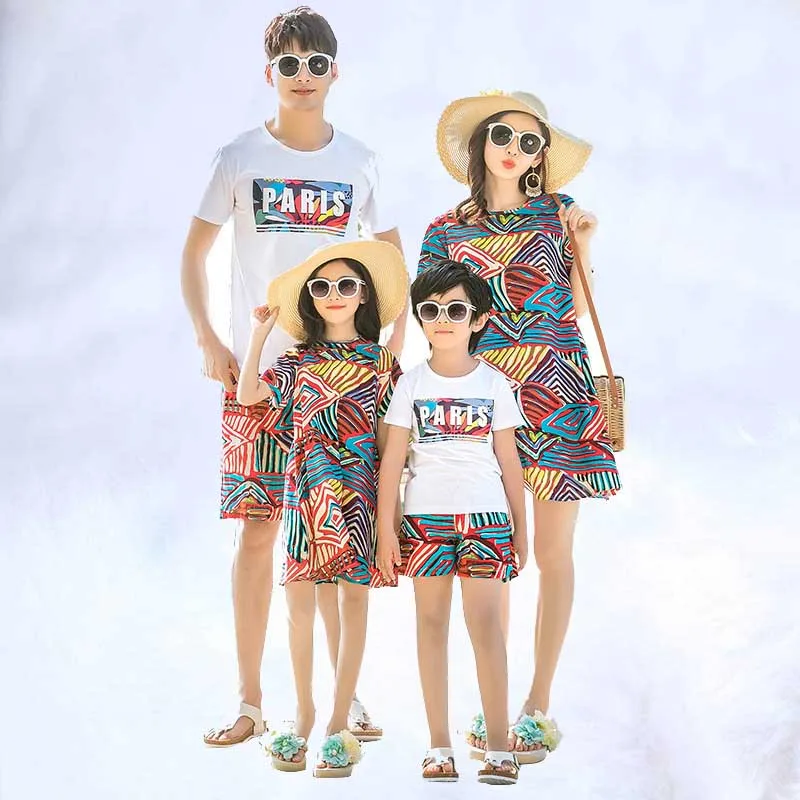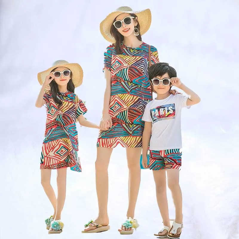 2019 Одинаковая одежда для семьи одежда «Мама и я» летняя одежда для мамы и дочки, платье в богемном стиле для маленьких девочек и мальчиков, женские футболки