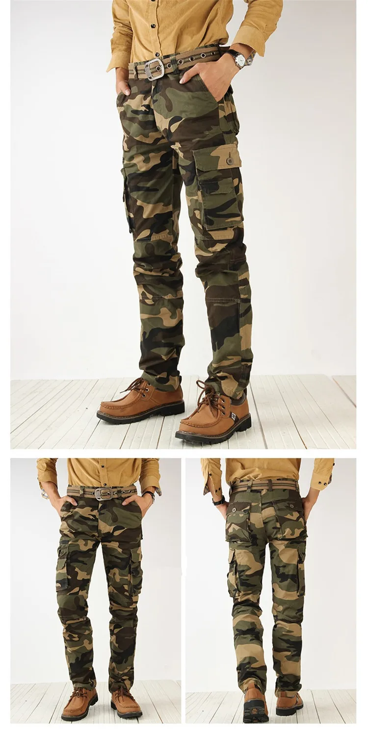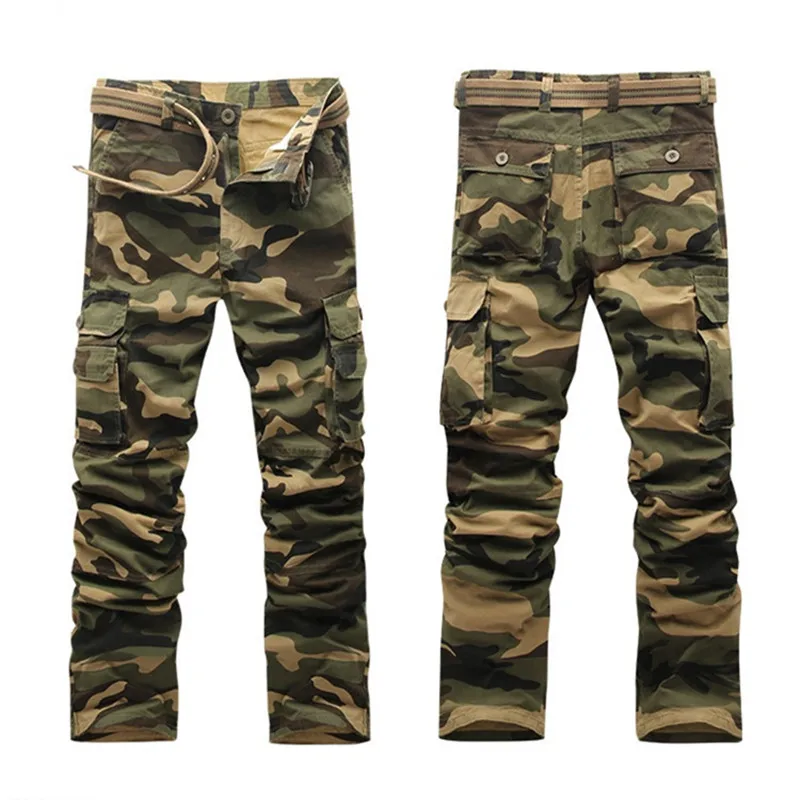 Мужские брюки-карго, камуфляжные свободные военные брюки с несколькими карманами, высококачественные длинные брюки для мужчин, камуфляжные брюки для бега размера плюс 28-38