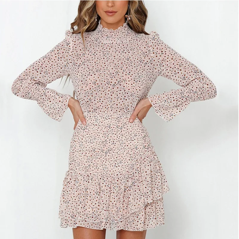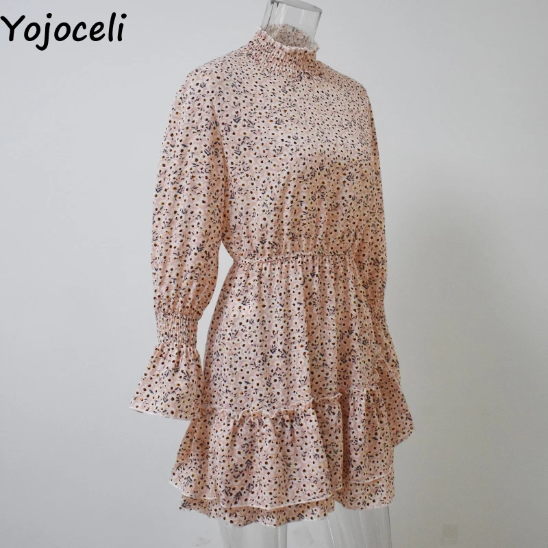 Женское шифоновое платье с рюшами Yojoceli, Элегантное повседневное короткое платье с принтом на осень, вечерние платья для пляжа