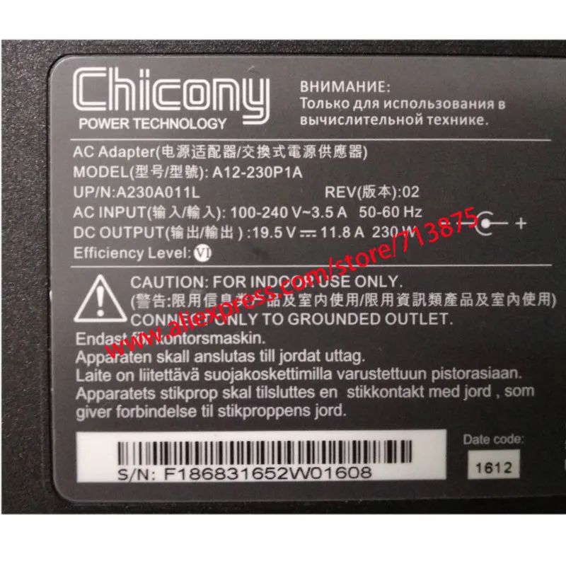 1 х адаптер переменного тока Chicony A12-230P1A 230 Вт адаптер переменного тока