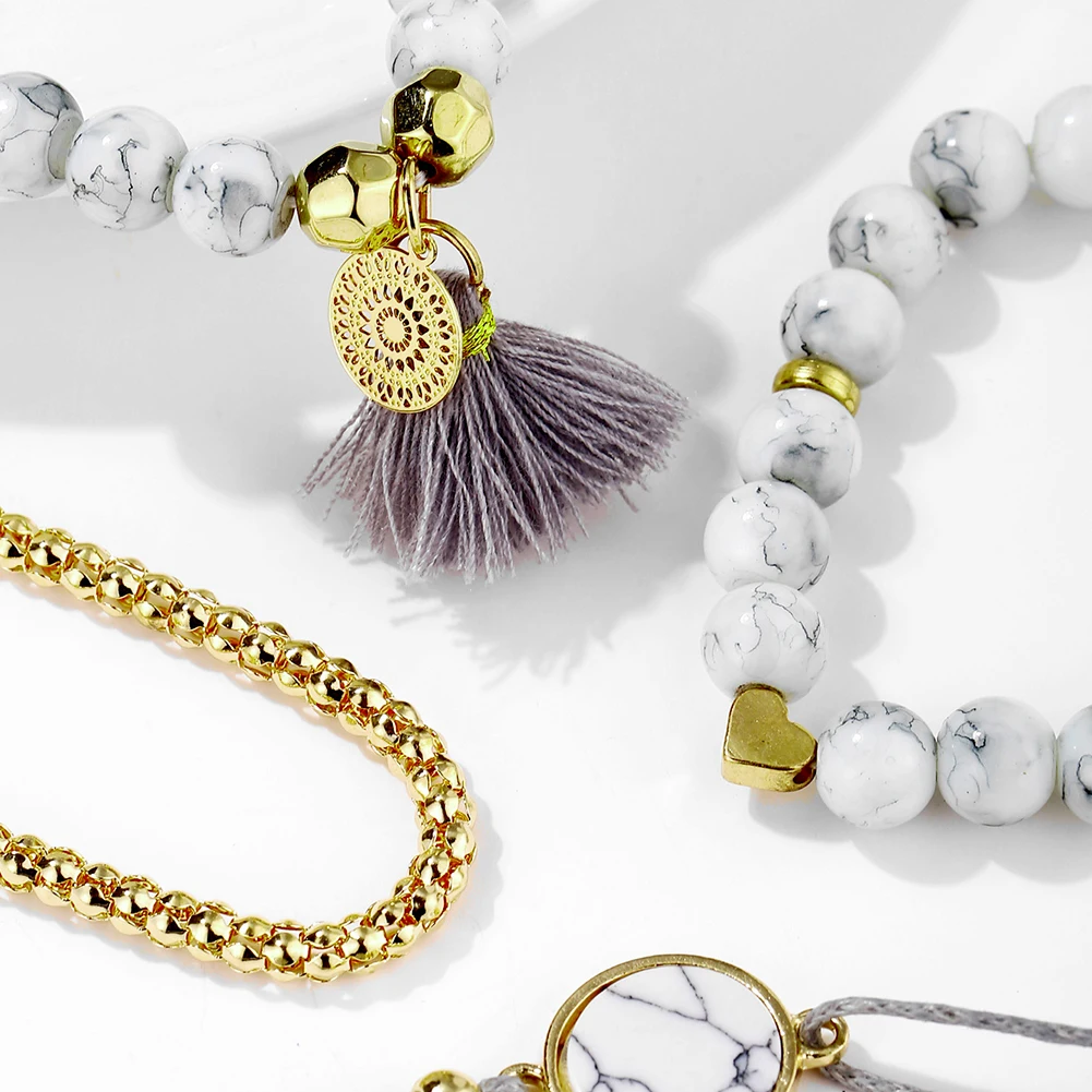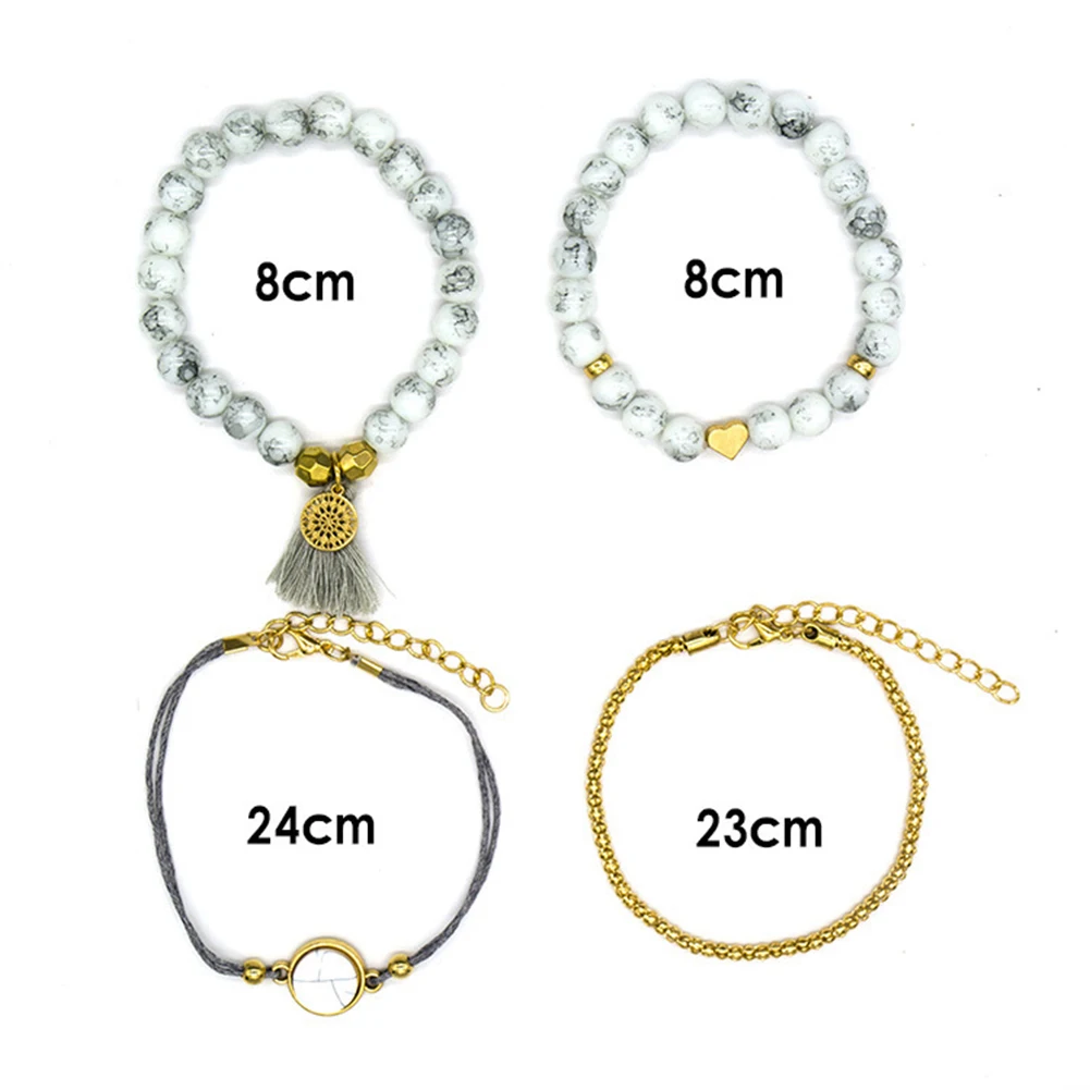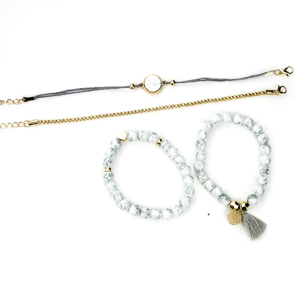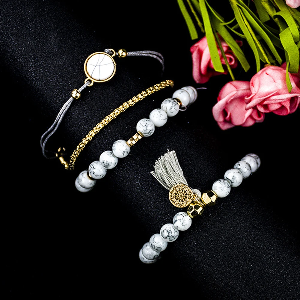 4 шт Женский Искусственный Бирюзовый бисер кисточкой Шарм Набор браслетов ювелирные изделия подарок