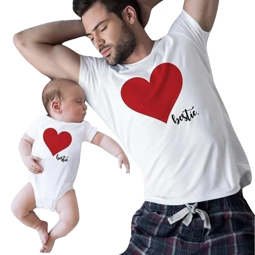 Семейные летние блузки с коротким рукавом для мужчин и женщин, с буквенным принтом сердца, топы, футболки