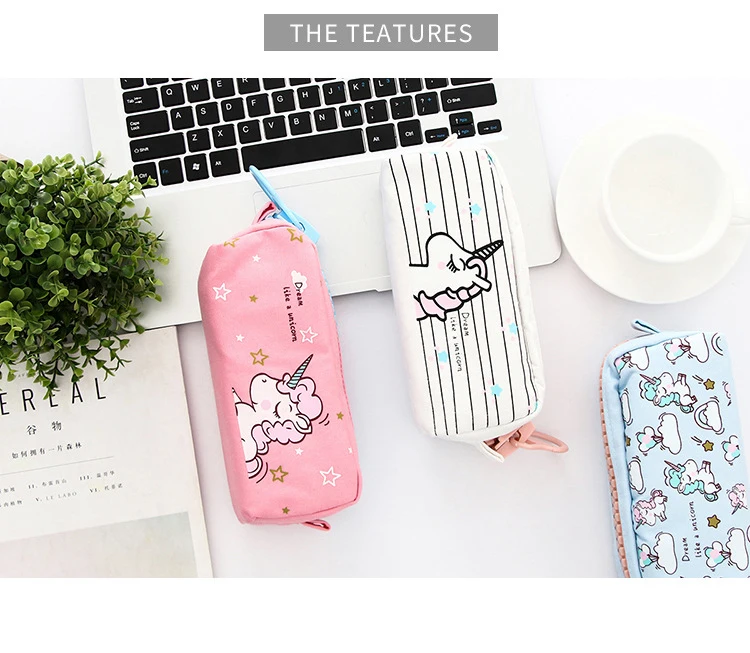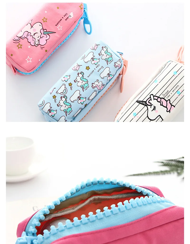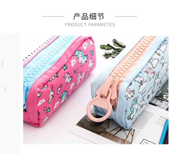 Большой чехол-карандаш на молнии с единорогом, большая вместительность, холст, школьная сумка-карандаш, сумка для хранения ручек, сумка для школьных принадлежностей, канцелярские принадлежности