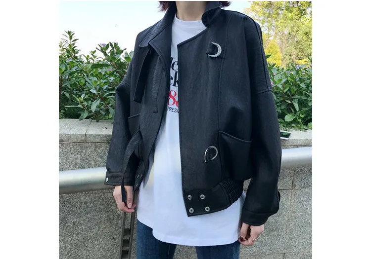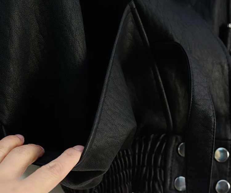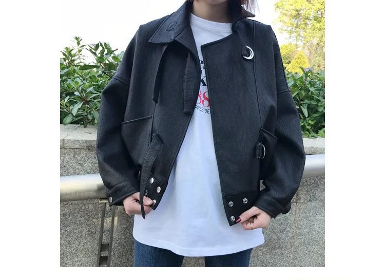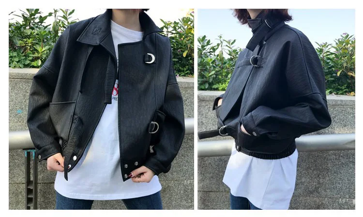 Куртка бомбер VOGUEIN черная с большим отворотом ассиметричная из искусственной