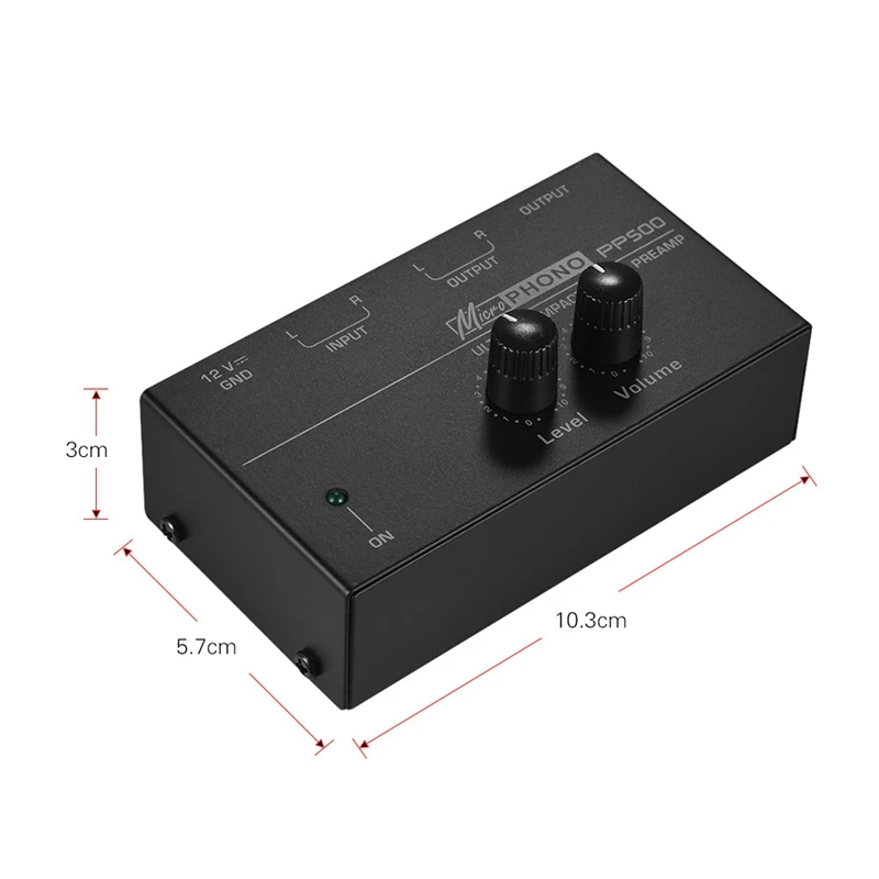 Ultra-compact phono preamplifier with metal body, portable and durable.