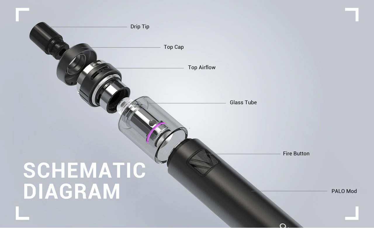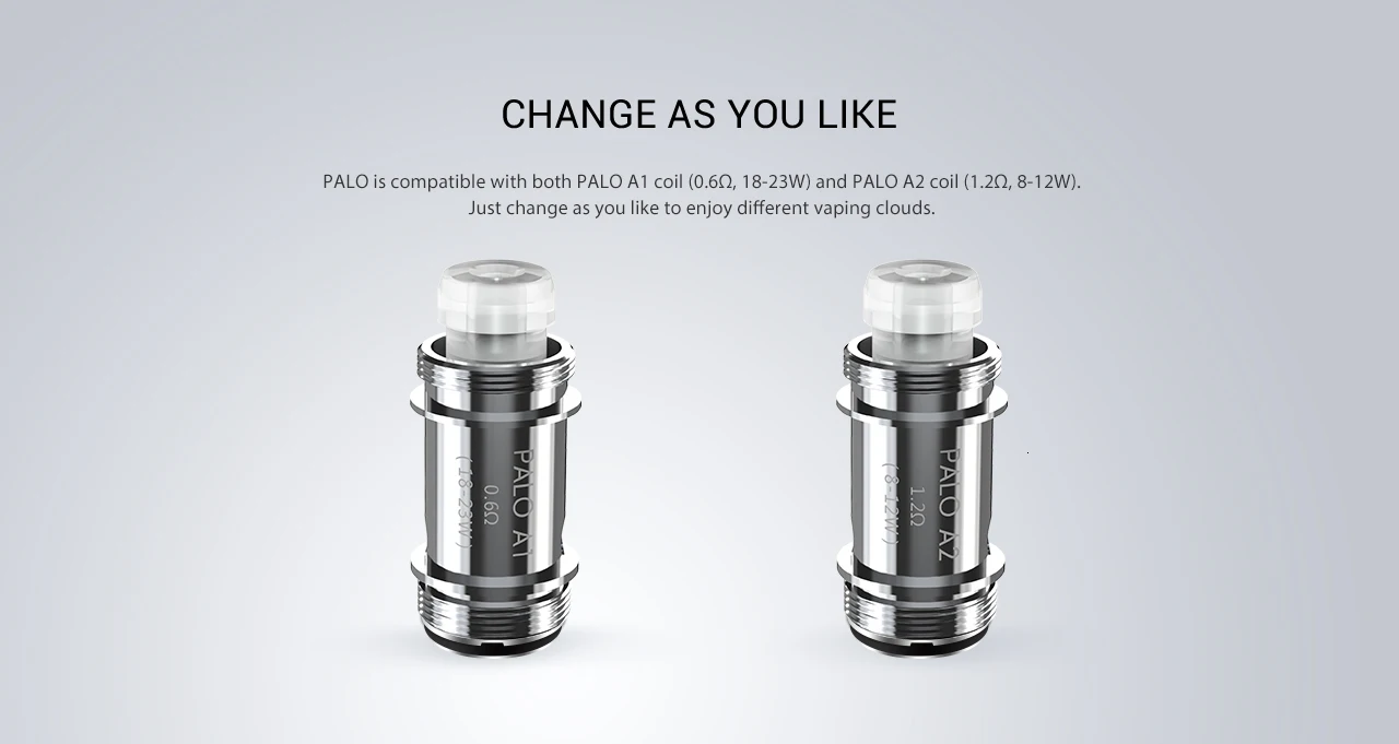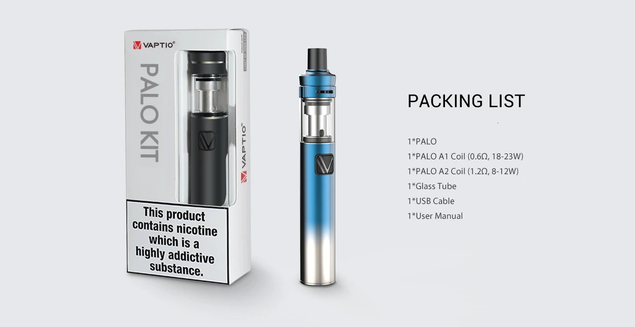 1x PALO 1х PALO A1 катушка (0.6Ω) 1х PALO A2 катушка (1.2Ω) 1 стеклянная трубка 1x Руководство пользователя