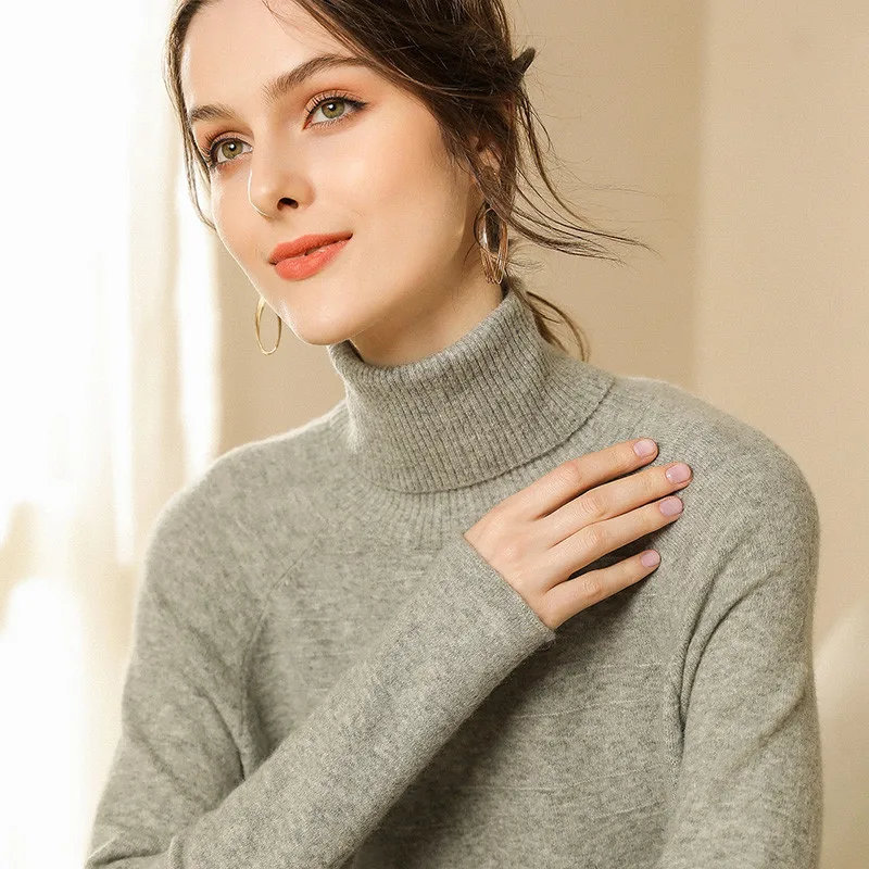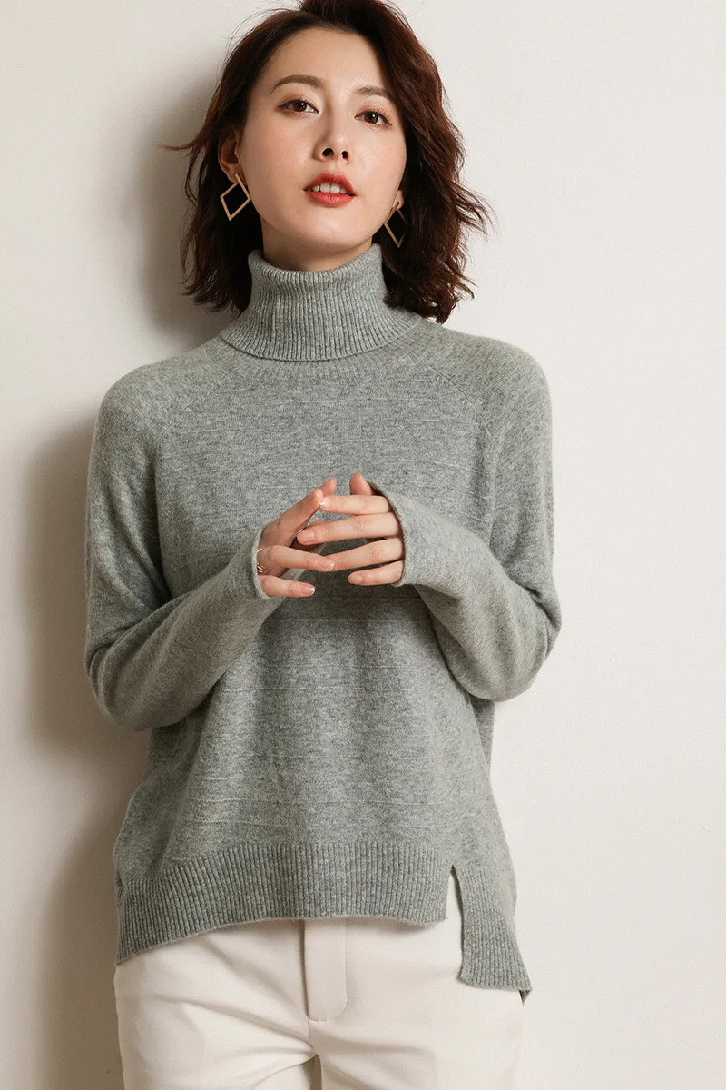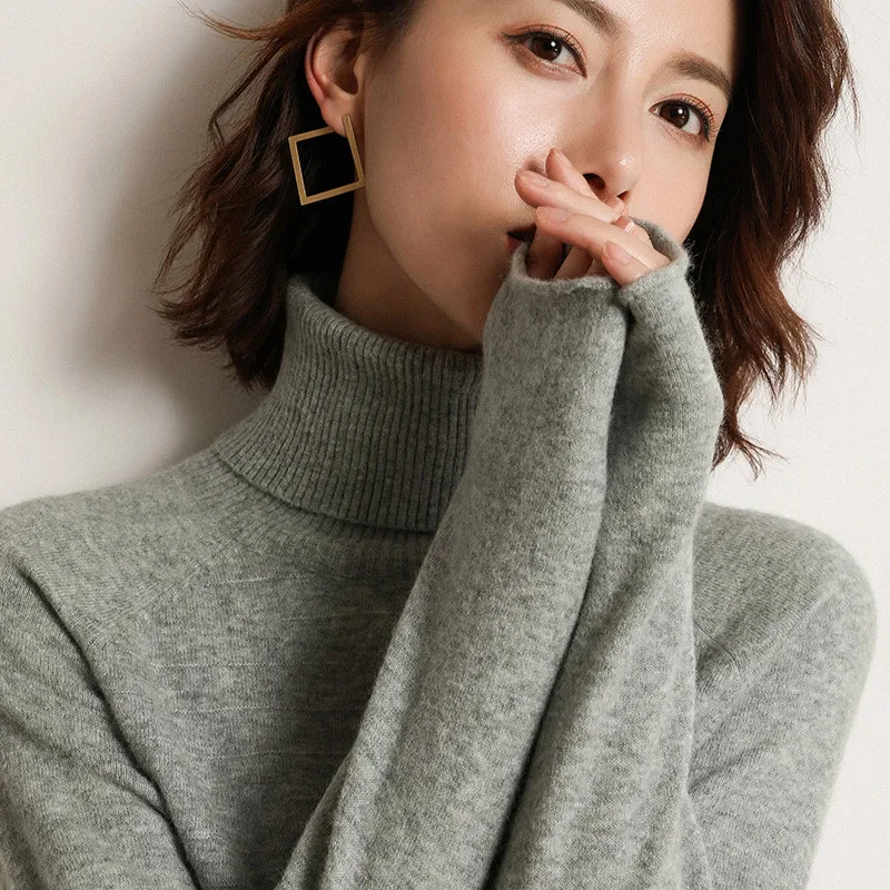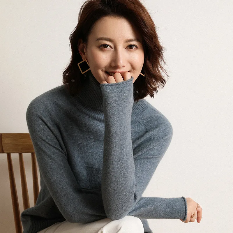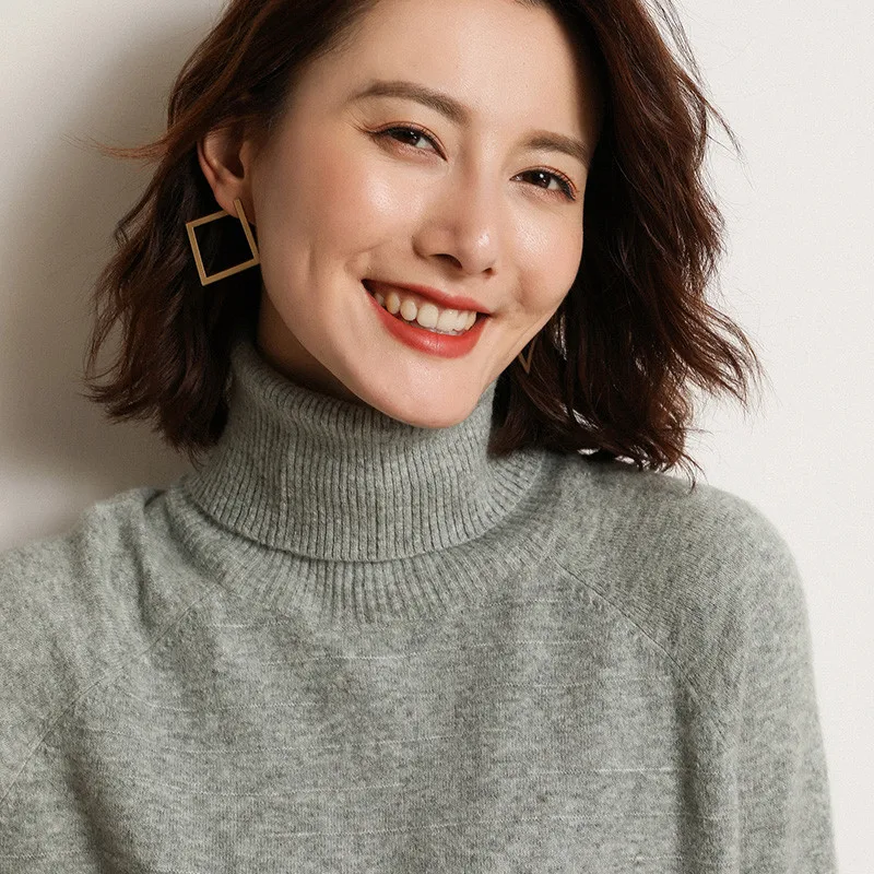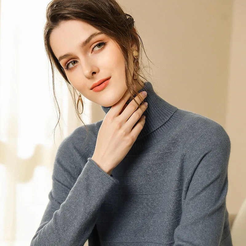 Женский трикотажный свитер повседневный Топ с длинным рукавом и высоким