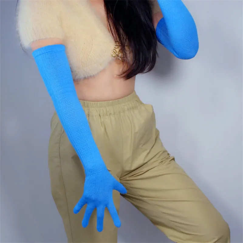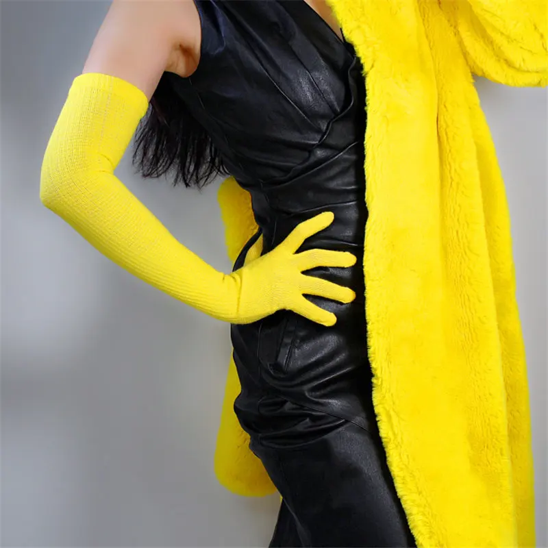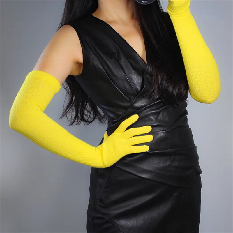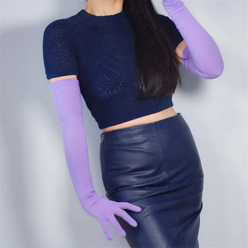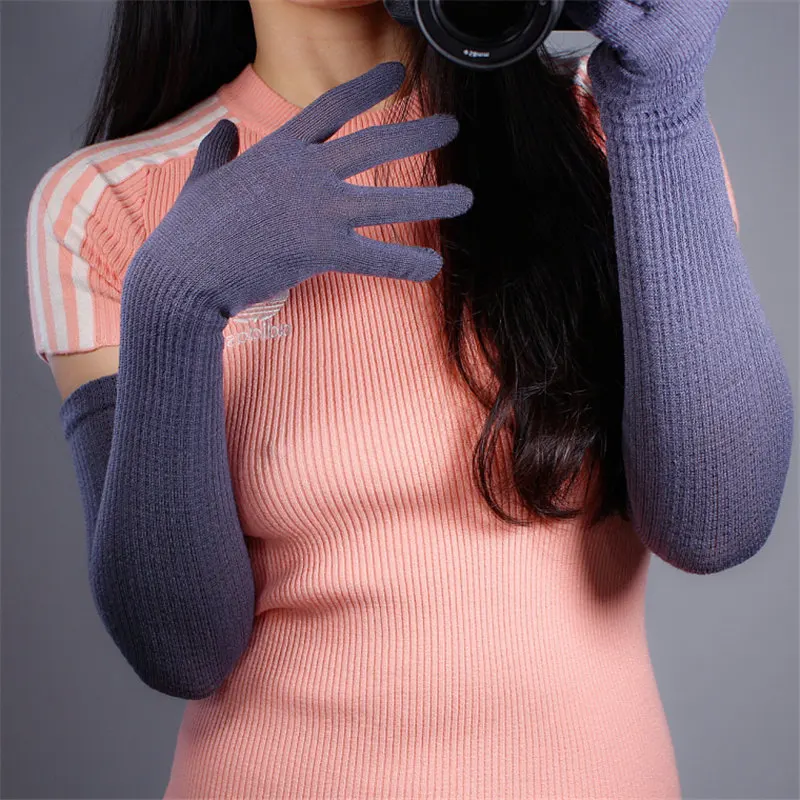 Модные длинные шерстяные перчатки 55 см Вязание пять пальцев высокая эластичность шерсть Женские Темно-серые S00235-3