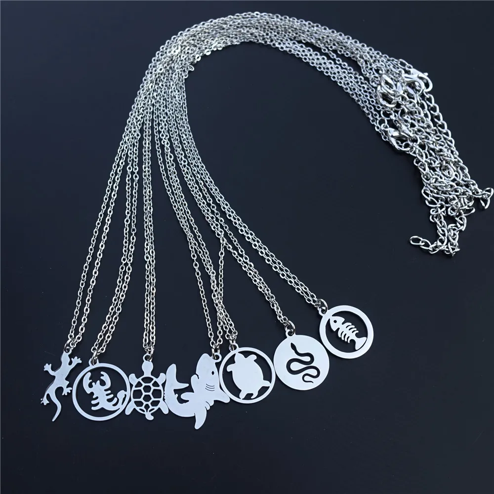 Ожерелье с подвеской в виде змеи, черепахи, раков, ящерицы, рыбы, женское модное украшение в виде животных, Подарочная цепочка из нержавеющей сталиМатериал: кулон из нержавеющей стали и цепочка из нержавеющей стали
