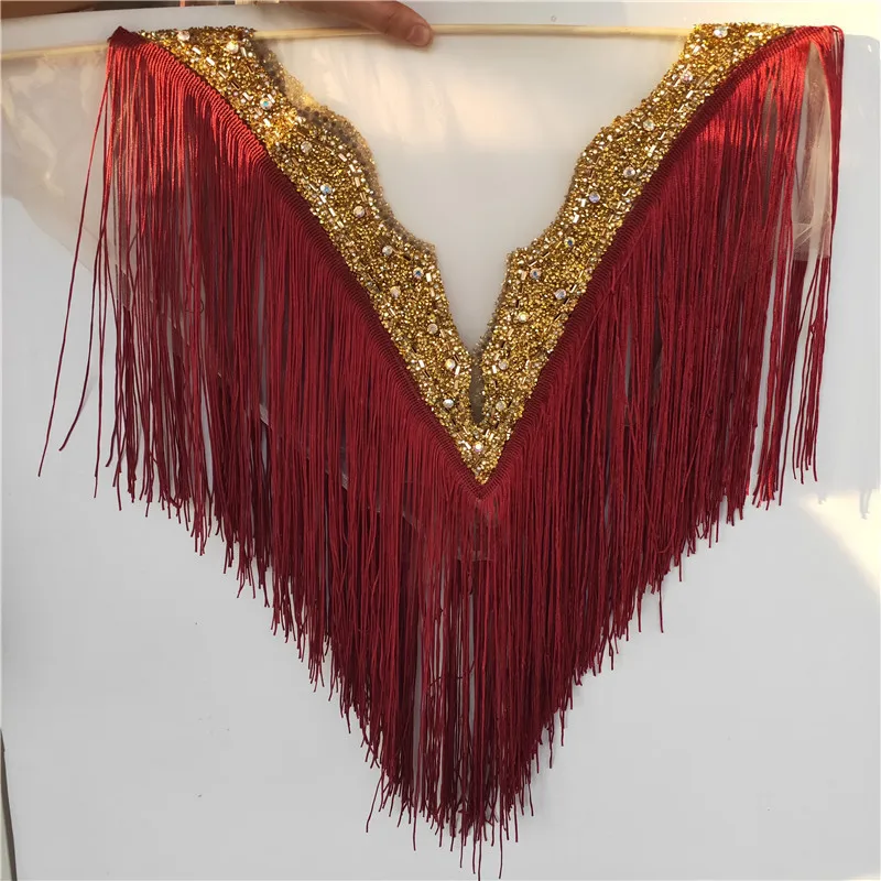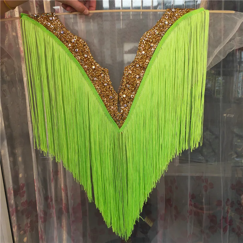 1 шт./лот зеленый Глубокий V-образный вырез с бахромой отделка кисточкой вышитый кристалл горный хрусталь воротник ожерелье сделай сам кружевные аксессуары для платья