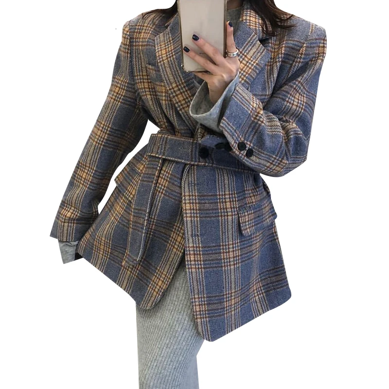 Женское тонкое шерстяное пальто черное с отложным воротником в Корейском стиле