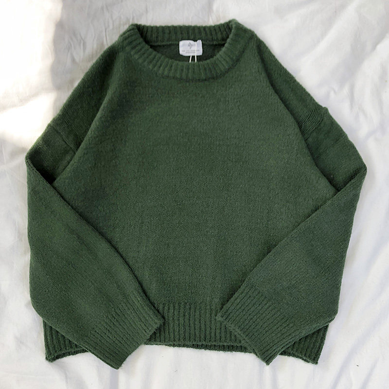 Корейский стиль, однотонный вязаный свитер для женщин, Осень-зима, толстые теплые свитера и пуловеры для женщин