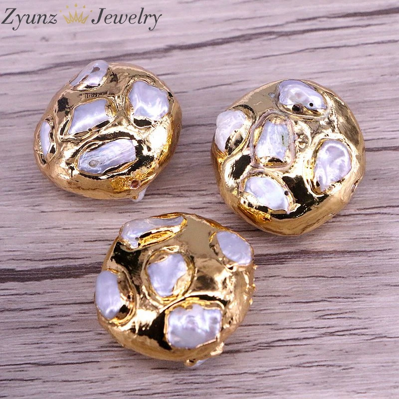 Золотой цвет натуральный жемчуг круглый соединитель бусины, перламутровые компоненты ювелирных изделий, аксессуары