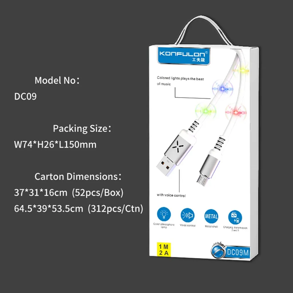 Micro Usb кабель 1 м Голосовая активация с подсветкой быстрое зарядное устройство для рекордера кабель планшет Android прочная линия передачи данных