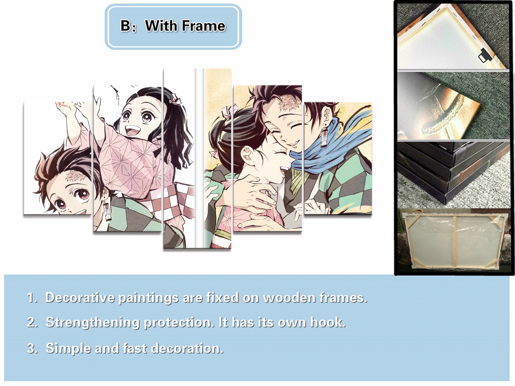 Вариант оправы-это Холст из 5 частей, который уже находится на деревянной раме и готов к висению.