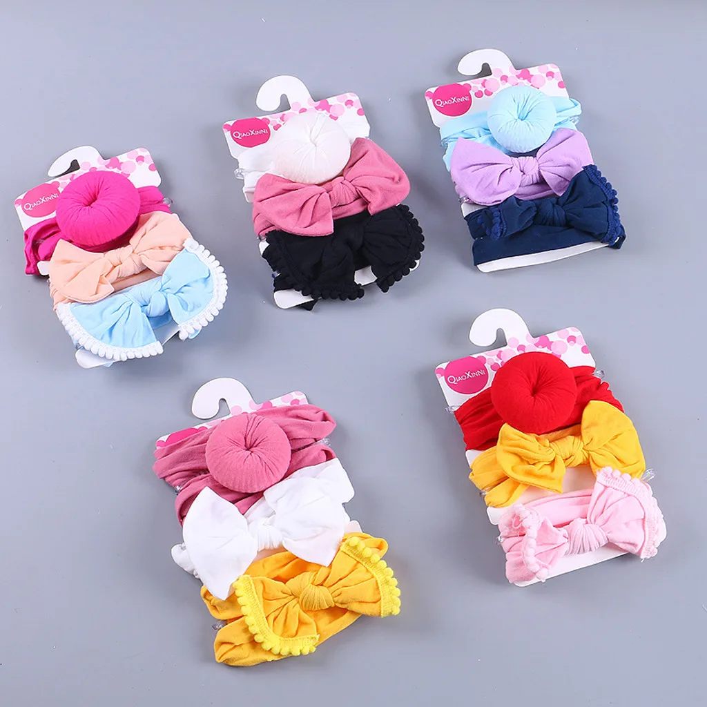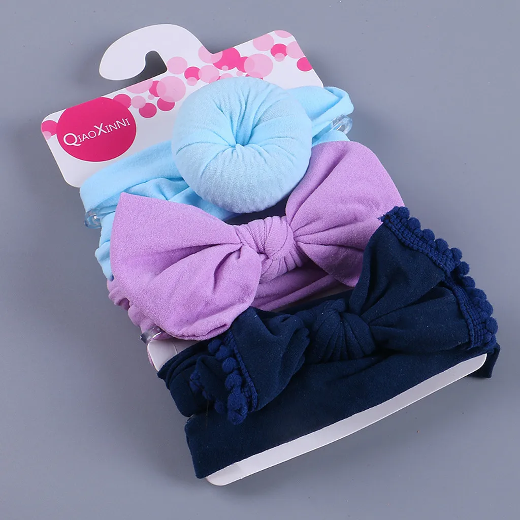 3 шт. Детская повязка на голову с цветочным рисунком для девочек, детские Эластичные аксессуары с бантом, набор для волос