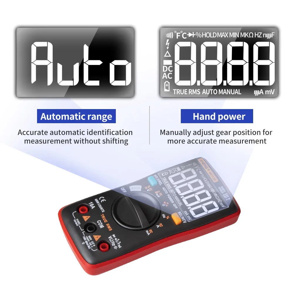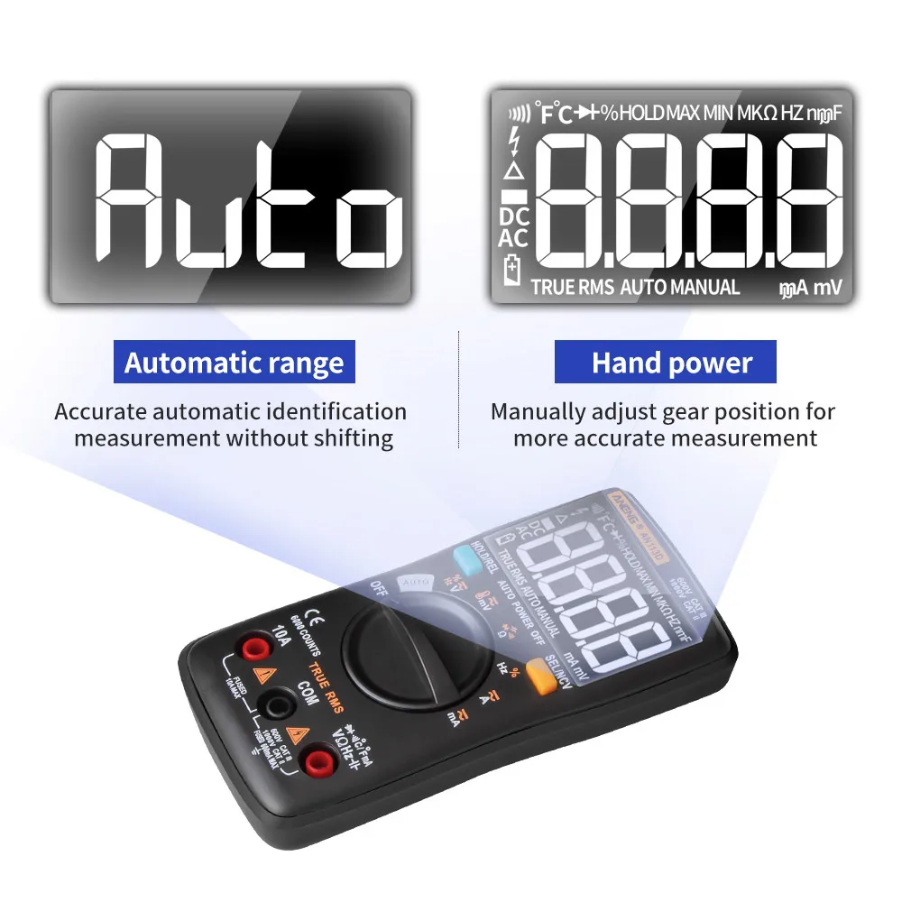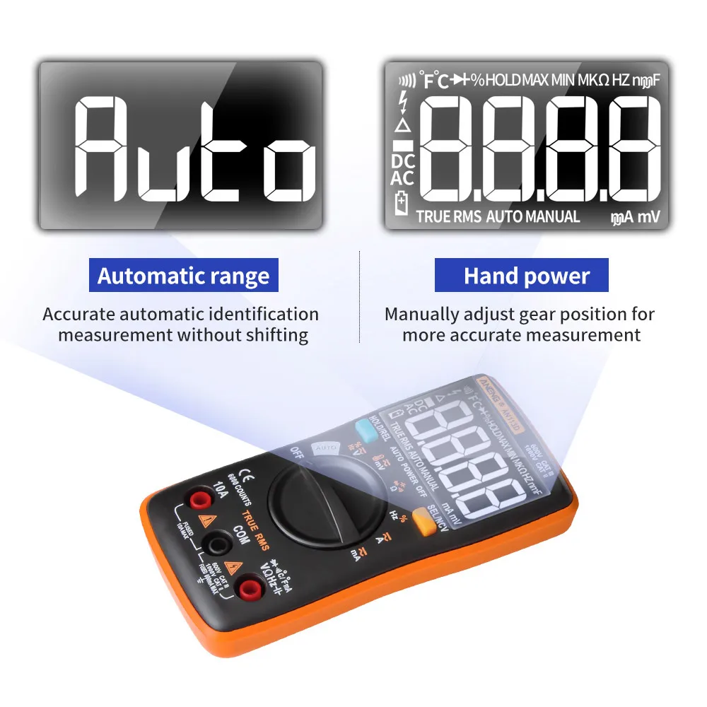 Поддержка ручного и автоматического диапазона, Встроенный смарт-чип, регулируемая Автоматическая идентификация измерительных объектов для автоматического измерения и измерения фонарика.