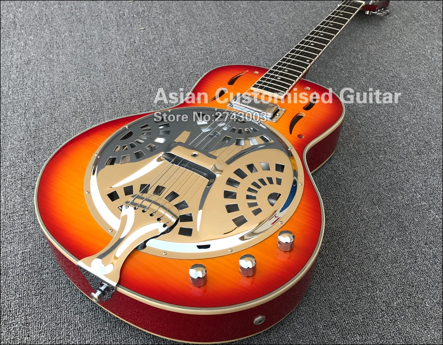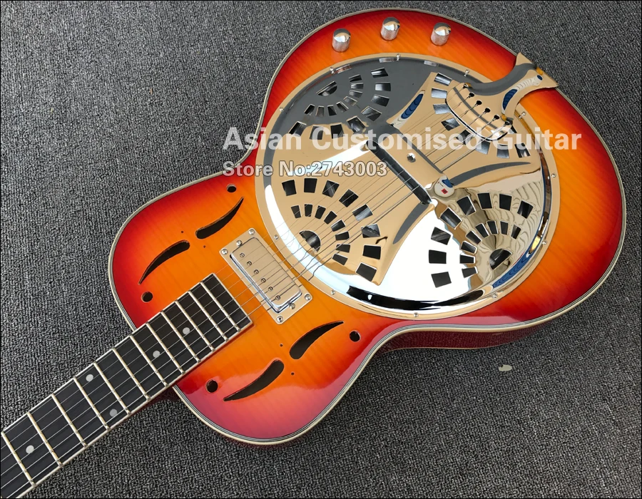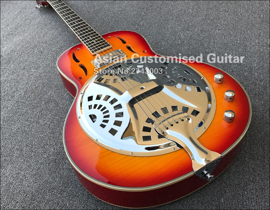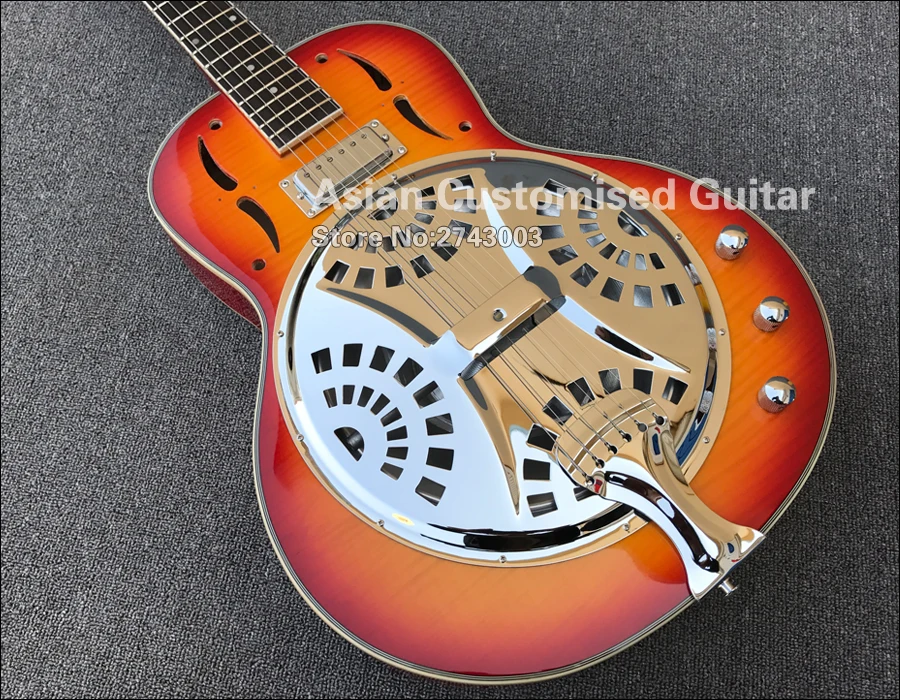 Grote Cherry Sunburst резонатор для Добро пожаловать стальная электрогитара с пламенным кленовым верхом, Dobro Guitarra, мини Humbucker Пикап
