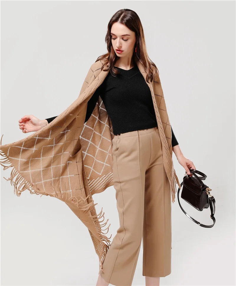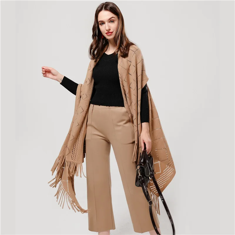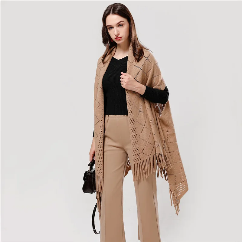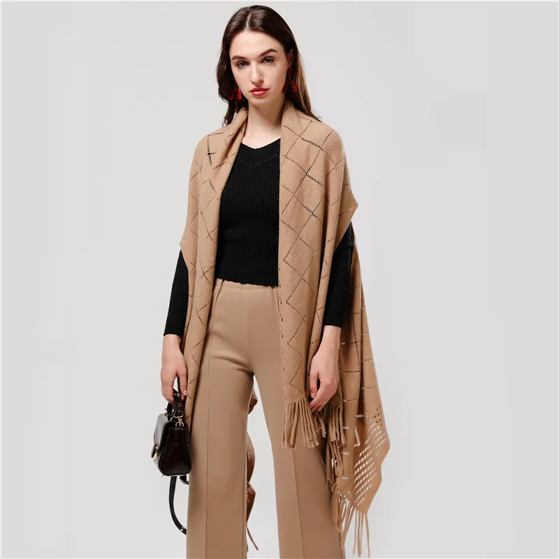 2019 роскошное Брендовое женское вязаное пальто пончо большого размера, плотный кашемировый зимний шарф, шали, дизайнерские толстые пончо из пашмины, накидки