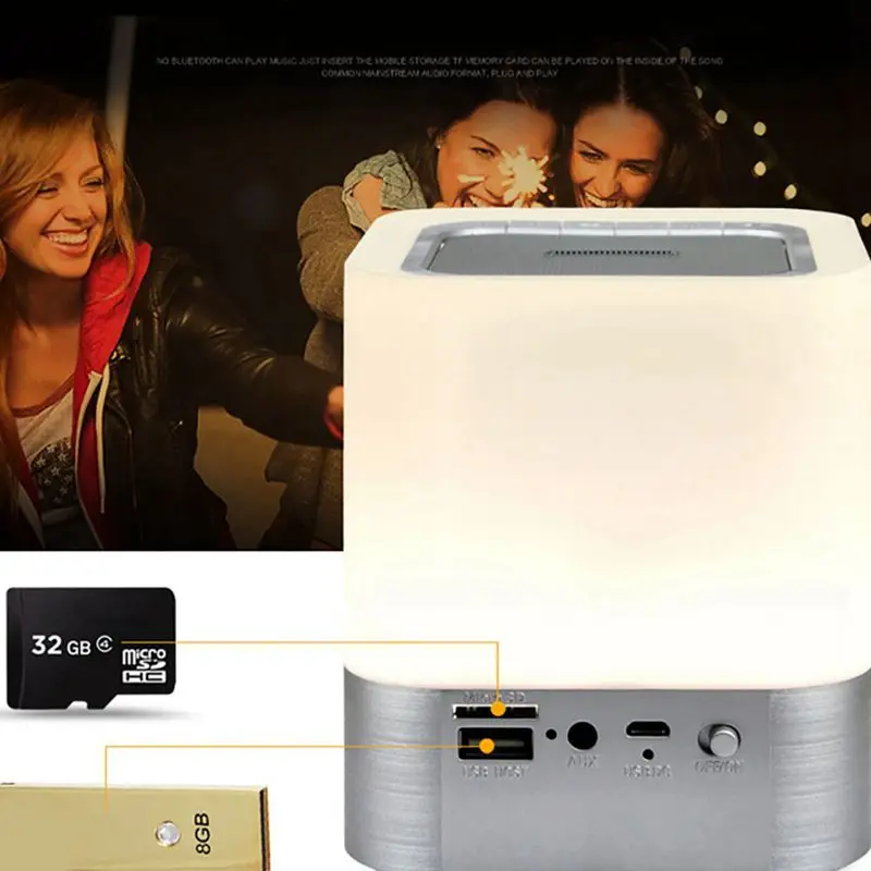 Новый 5 в 1 Многофункциональный Bluetooth динамик + сенсорный датчик Светодиодная лампа + Будильник + MP3-плеер + ручной Бесплатный звонок. также можно использовать в качестве mp3-плеера с входом USB и Micro-TF/SD карты, входом AUX и флеш-накопителем. Подходят для вечерние, спортивные и для активного отдыха. Супер долгая игра, супер долгое освещение большой емкости, встроенный в перезаряжаемый аккумулятор с 4400 мАч, который может прослужить 3 недели в режиме ожидания.