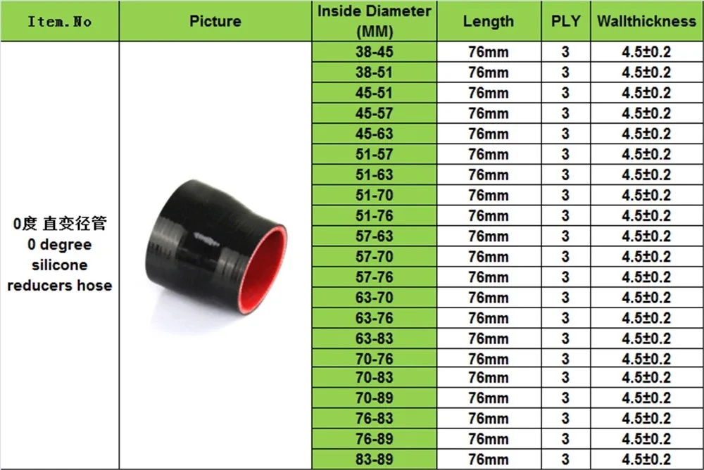 Прямой прочный силиконовый refroissement 0 градусов Редуктор силиконовый шланг 38-45 51-57 63-70 76-83 мм силиконовая трубка для труб