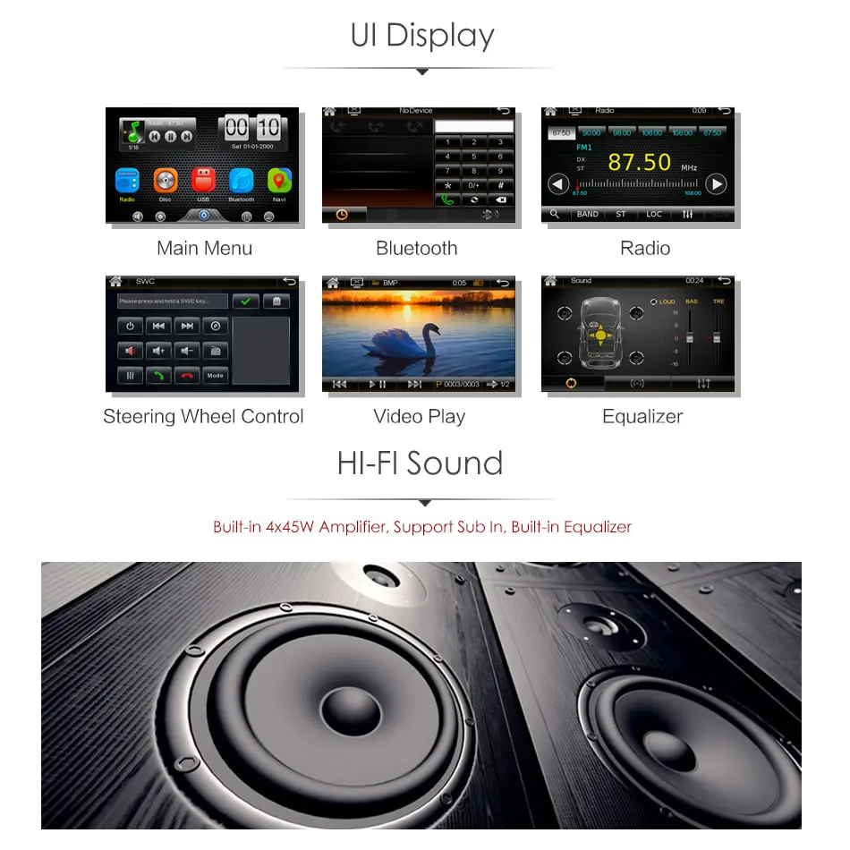 Все в одном, мультимедийная система 6,2 дюймов HD сенсорный экран (без GPS) Функция зеркального экрана Поставляется с камерой заднего вида HD Видео выход/поддержка Регион Бесплатный dvd-плеер Подключение по Bluetooth для более безопасного вызова в дороге Поддержка управления рулевого колеса Идеальное обновление для вашего автомобиля, чистый гладкий дизайн, идеально подходящий вашему автомобилю Воспроизводит все популярные типы дисковых и цифровых мультимедийных файлов (вход USB / Micro SD)