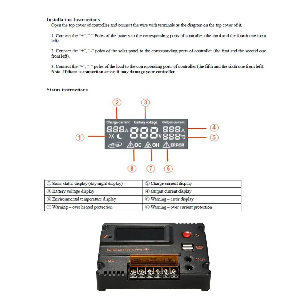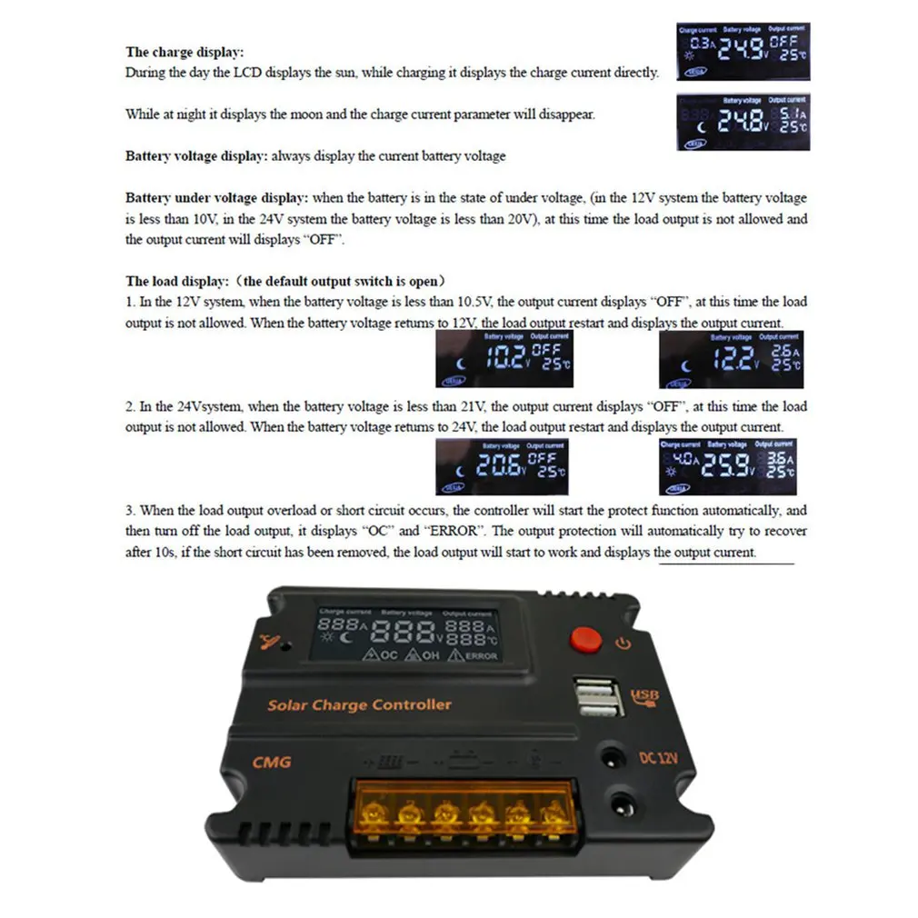 1. Этот контроллер заряда солнечной батареи использует передовые цифровые технологии и работает полностью автоматически.
