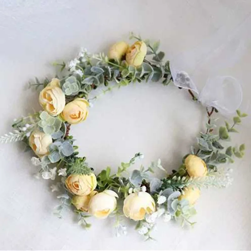 Венок из цветов камелии, Корона праздничный головной убор, женские аксессуары для волос, головной убор для девочек, цветочная гирлянда, Свадебный Цветочный головной убор