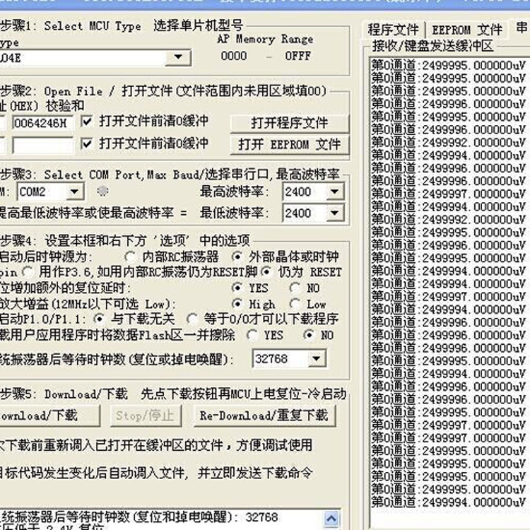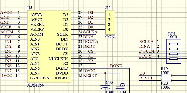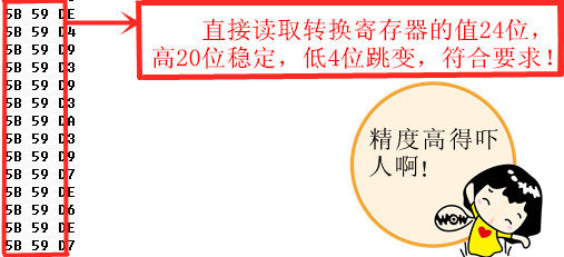 /*********************************************************************** * 名称:Ad1256Ini() * 功能:初始化ADS1256 * 入口参数:ain_slect:通道选择 pga:内置增益选择 fdat:转换速率 * 出口参数:0:初始化失败 1:初始化成功 * 编写日期:2013-10-31 ************************************************************************/ void Ad1256Ini(void) { uint8 zz; while(DRDY); zz = SpiMasterSendData(RESET); ColDelayUs(100); while(DRDY); zz = SpiMasterSendData(SYNC); //同步命令 zz = SpiMasterSendData(WAKEUP); //唤醒命令 while(DRDY); zz = SpiMasterSendData(WREG|STATUS); //连续写4个寄存器 zz = SpiMasterSendData(3); zz = SpiMasterSendData(0x04); //STATUS: MSB ;AOTO ColCalibration;BUFFER DISABLEED zz = SpiMasterSendData(0X0F); //MUX : AIN0 zz = SpiMasterSendData(0X20); //ADCON : FCLK IN;SENSOR DETECT OFF;PGA 1 zz = SpiMasterSendData(0XD0); //DRATE : Ads1256Fdata 15KSPS ColDelayUs(50); } /*********************************************************************** The program code and its richness are not listed here. The 8-channel measurement, self-gain measurement, read register and other related test procedures have been debugged on the machine. Another large amount of classic code collected online is available for users to refer to the cutting configuration. It allows you to evaluate whether the ADS1256 is suitable for your project in the shortest possible time and save your valuable development time.