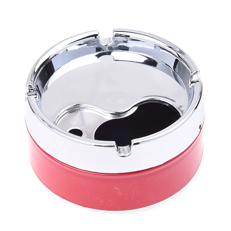 Красная Серебряная цилиндрическая пепельница с вращающейся верхней крышкой, проста в использовании.