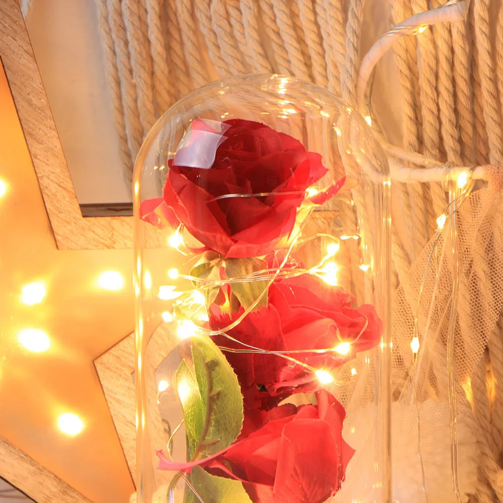 Искусственный Шелковый цветок розы с светодиодный стеклянный купол абажур для Дня матери День Святого Валентина Рождество юбилей день рождения украшения на День Благодарения